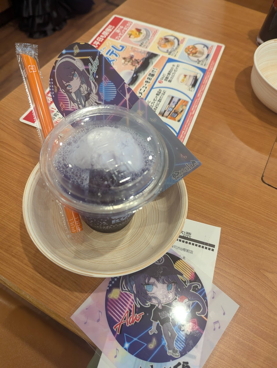 After settling in and freshening up from the journey, it was time to dive into the Tokyo food scene. Reuniting with my friend Alex, we made a beeline for Kura Sushi, a conveyor belt sushi experience known for its playful atmosphere. Imagine it: a technicolor parade of delectable bites gliding past on a miniature bullet train, each a delicious invitation. Adding to the excitement, Kura Sushi was celebrating a collaboration with the popular singer Ado, the restaurant having themed dishes and gachapon.