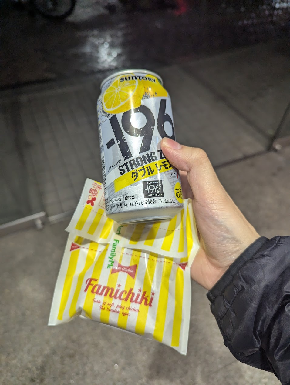 Ah, the perfect first bite of Tokyo! As I sipped my Strong Zero and munched on the crispy Famichiki, the city lights began to twinkle alive, promising countless adventures in the days to come. This was just the beginning…