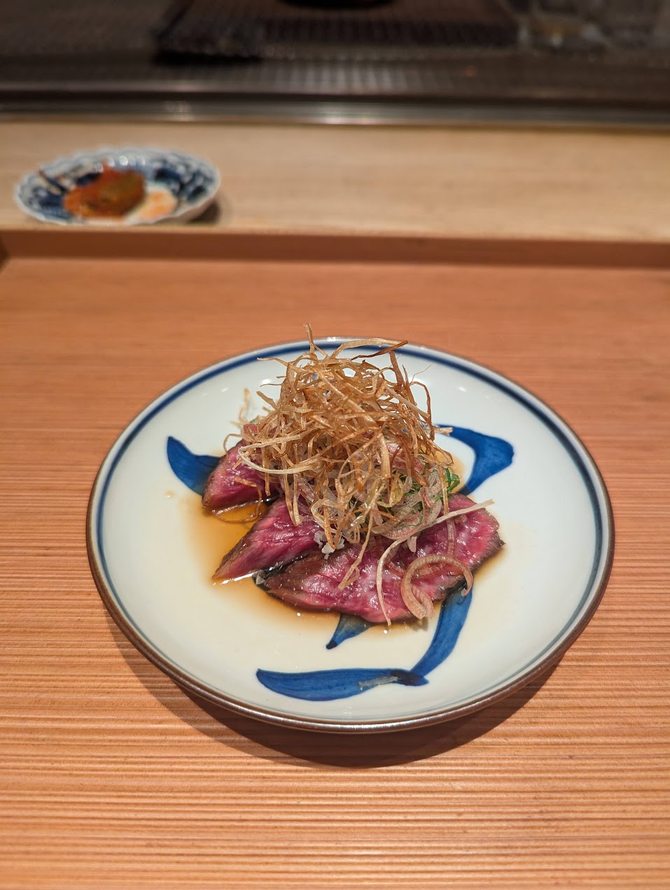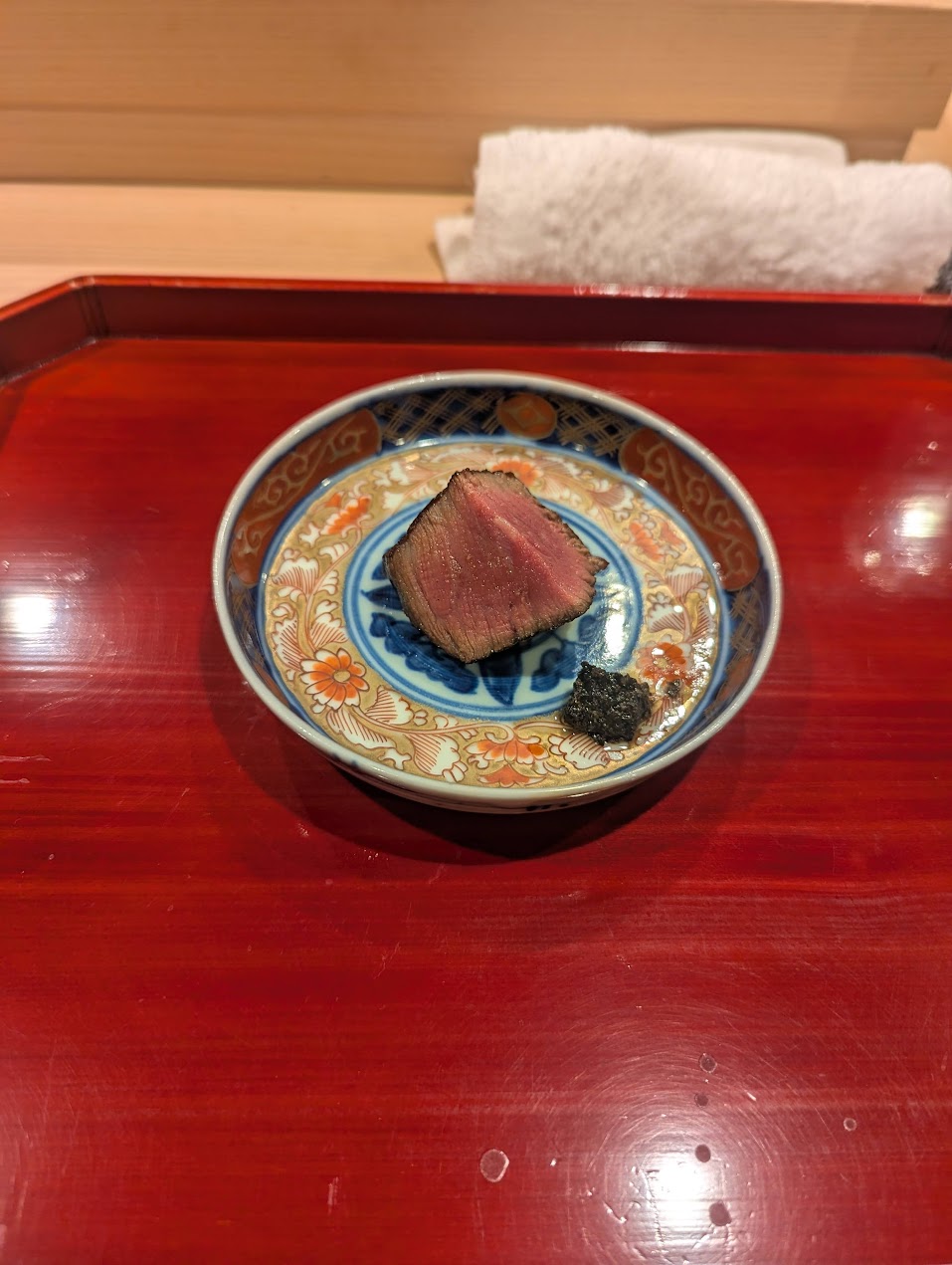 The evening brought a stark change of pace. Alex and I had reservations at Ginza Kitagawa, a prestigious Michelin-starred restaurant specializing in Japanese Kaiseki cuisine. Finding the restaurant proved to be a bit of an adventure in itself. Despite relying on Google Maps, we initially ended up on the wrong side of the street, thanks to a slight discrepancy with Alex’s GPS. After a brief detour, we finally arrived and were immediately immersed in an atmosphere of refined elegance. Each course of the Kaiseki meal was a work of art, a delicate balance of flavors and textures. For me, the standout dish was undoubtedly the exquisitely prepared steak. It was a perfect culmination to a day of diverse and contrasting experiences in Tokyo.