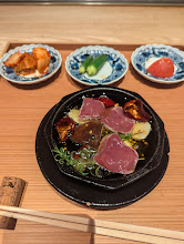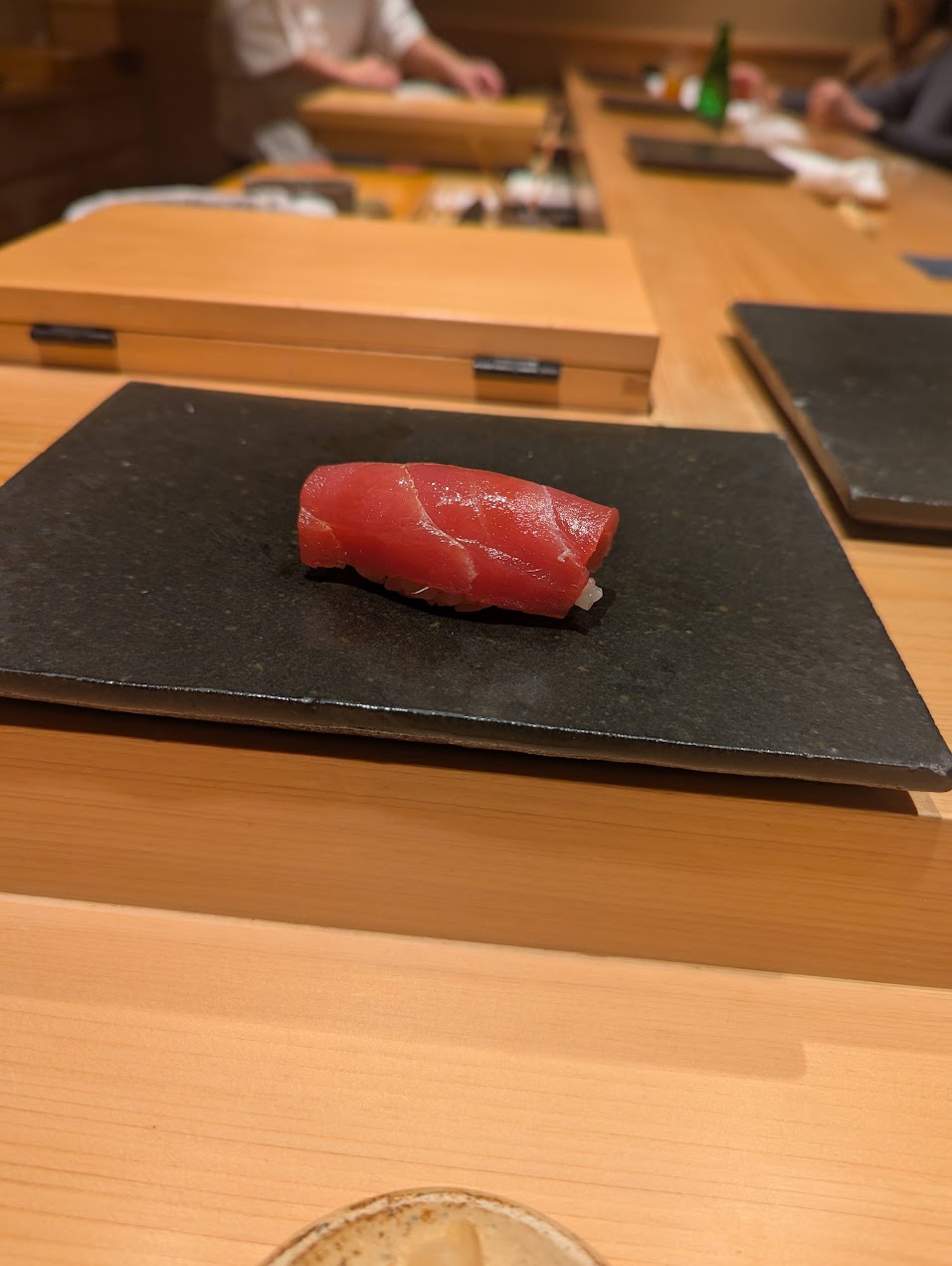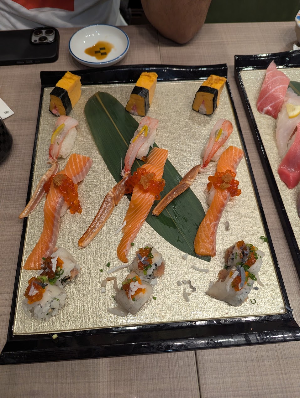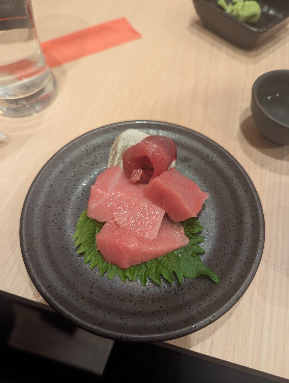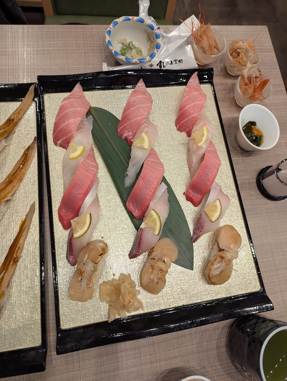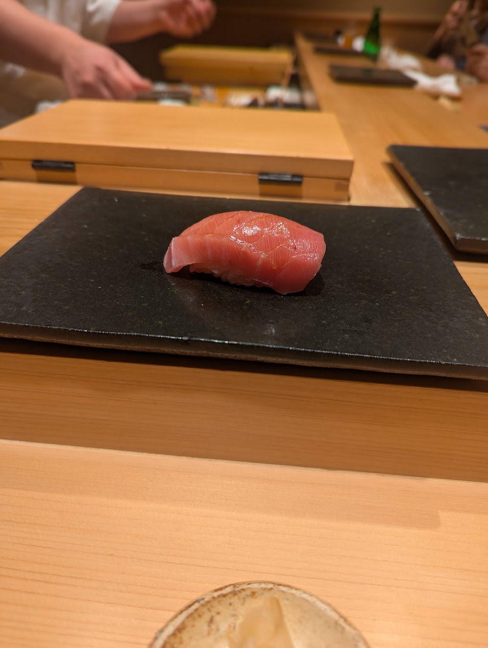 We were seated alongside a friendly Korean couple from the Seattle area, who were traveling with their adorable infant. It was a pleasant surprise to connect with fellow Pacific Northwesterners in the heart of Tokyo. The tuna cutting show itself was a spectacle—a skilled chef wielding an enormous knife, expertly breaking down a massive tuna into perfectly portioned cuts. The sheer size of the fish was impressive, and the chef’s precision was mesmerizing. Of course, the real highlight was the tasting. The tuna was incredibly fresh, melting in our mouths with a rich, buttery flavor. Paired with endless pours of sake, it was a truly indulgent and unforgettable culinary experience.
