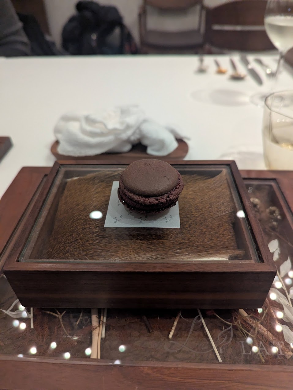 We had the privilege of enjoying a private room at Lature, creating an intimate setting for our group, which included myself, Abdul, Eniola, Kevin (who finally joined us!), and Alex. The atmosphere was elegant and sophisticated, setting the stage for a truly memorable meal. The menu was full of surprises, showcasing the chef’s creativity and skill in preparing game meat. Among the many exquisite dishes, one stood out as particularly unique and memorable: the deer blood macaron. It was a bold and unexpected flavor combination, and while it might sound unusual, it was surprisingly delicious and a true highlight of the meal. The entire dining experience at Lature was exceptional, a perfect blend of culinary artistry and unique concept. It was a fitting end to a day that had taken us from the world of tech and rhythm games to the heights of Michelin-starred gastronomy.