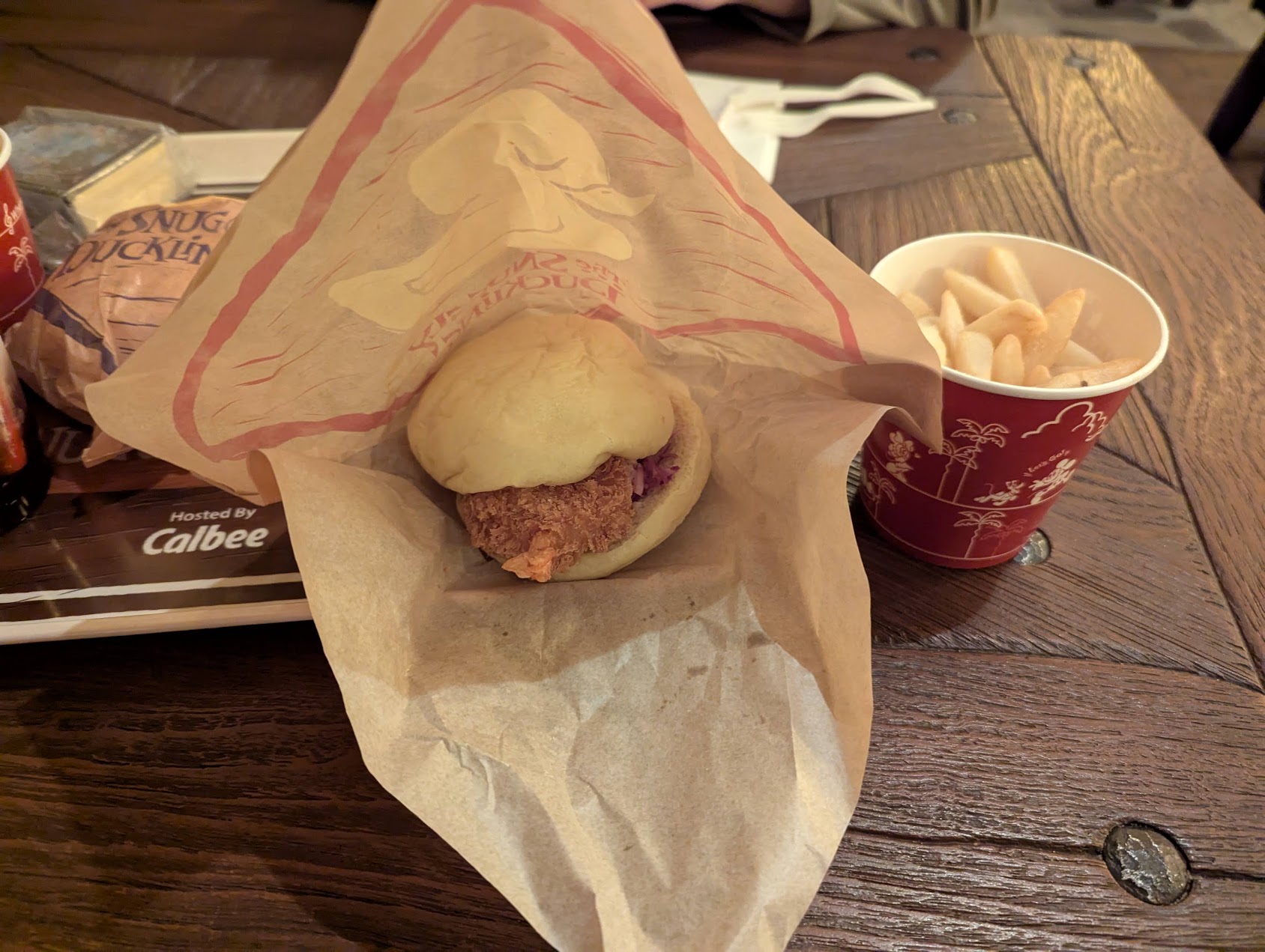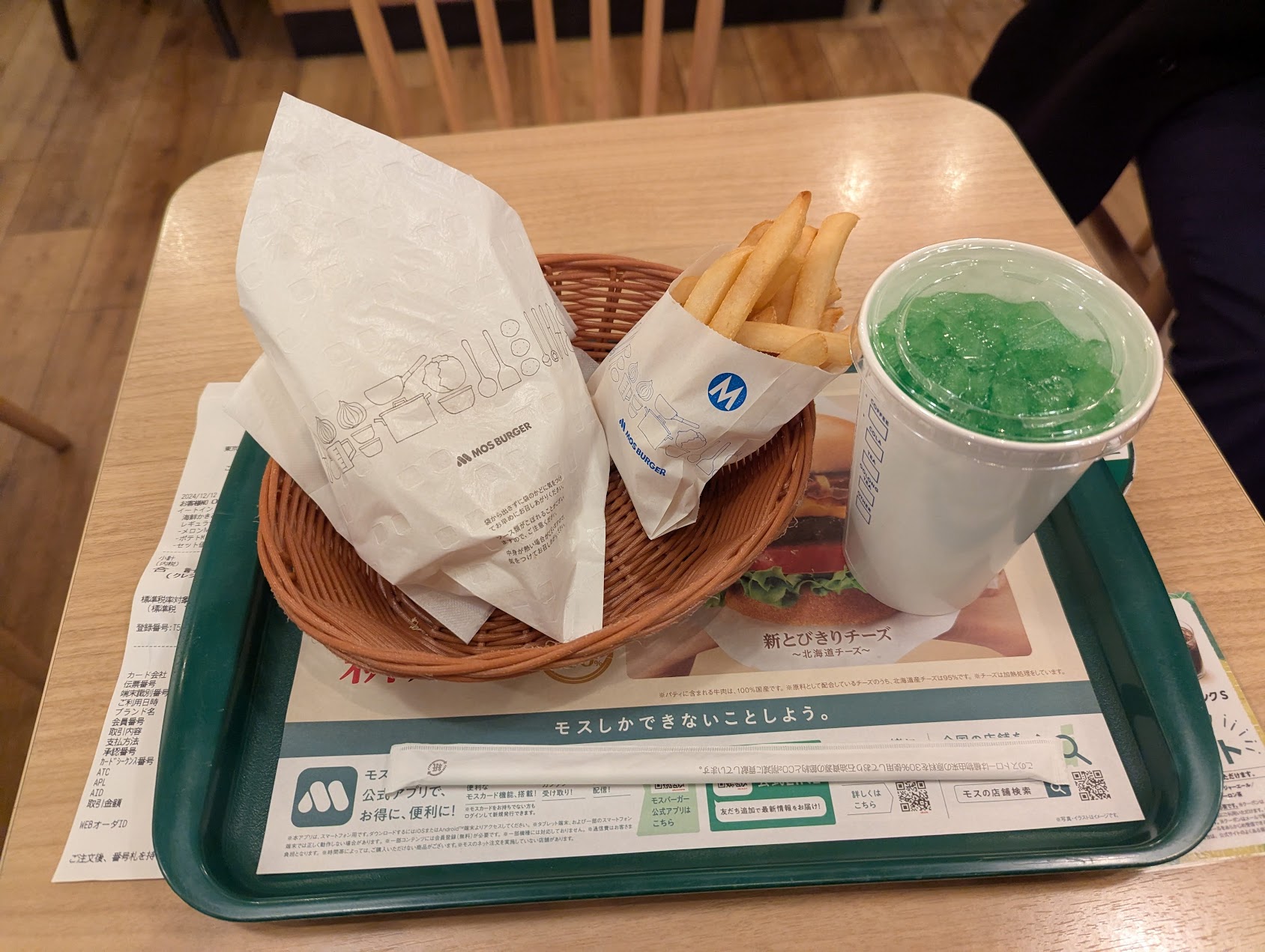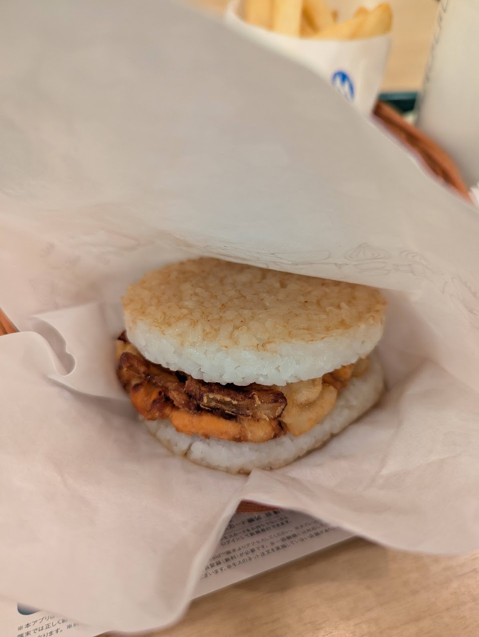 With my new coat in tow, I decided to try the infamous MOS Burger rice burger. I ordered it with fries and vegetables, but the whole experience was a bit of a letdown. The rice patties weren’t particularly flavorful, and the absence of ketchup was a major disappointment.