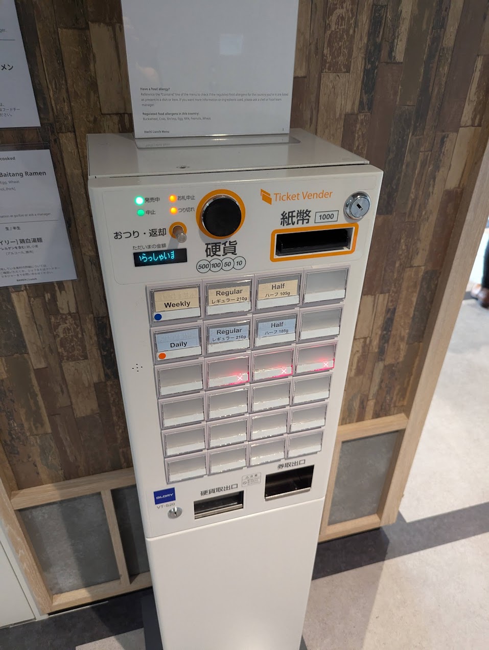Today’s agenda was a mix of familiar territory and new discoveries, starting with a return visit to the Google office for lunch. This time, Alex joined us as a guest to experience the office’s unique atmosphere and culinary offerings. One of the more interesting features of the Google Shibuya office is the ticket machine at the entrance, just like you’d find at many authentic Japanese ramen shops. It’s a neat touch that adds a bit of local flavor to the office environment.