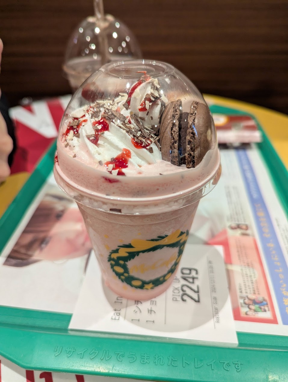 Back in Shinjuku, we decided to try our luck at another crane game arcade. Before hitting the arcades, we made a quick stop at McDonald’s. In a classic McDonald’s moment, the ice cream machine was out of order, forcing me to settle for a strawberry Frappuccino with a chocolate macaron mixed in—a surprisingly tasty and unconventional combination.