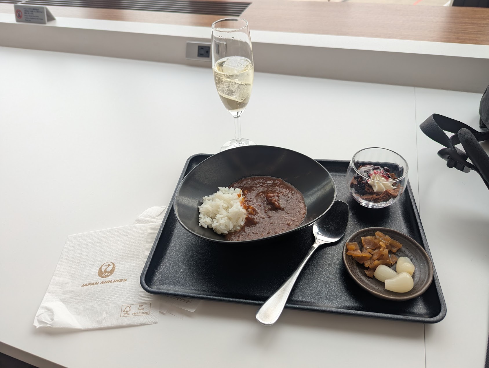 My destination within Narita was the JAL Sakura Lounge, a haven of comfort and relaxation for JAL’s premium passengers. I settled into the lounge and took advantage of the amenities. One of the highlights was the JAL beef curry, a popular and consistently praised offering in the lounge. I helped myself to a generous serving, savoring the rich and flavorful curry. I also enjoyed a few drinks from the lounge’s well-stocked bar, taking the opportunity to unwind and reflect on my experiences in Japan. The lounge provided a tranquil escape from the hustle and bustle of the airport, offering comfortable seating, Wi-Fi, and a variety of food and beverage options.