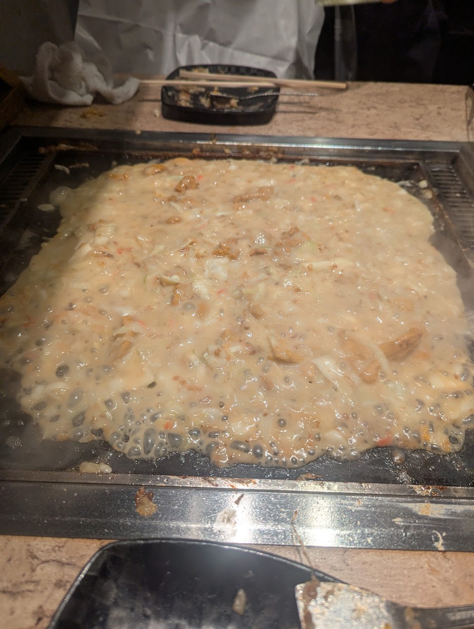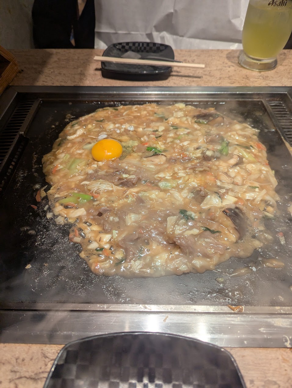 To cap off the night, I met up with Abdul for dinner at Tsukishima Monja Jugoya. It was my first encounter with monjayaki. If you’ve never seen it, it’s basically a delicious savory pancake that looks like a construction accident until the staff works their magic with metal spatulas right at your table. It was the perfect, chaotic end to a very long day. Then, I finally—finally—collapsed into bed.