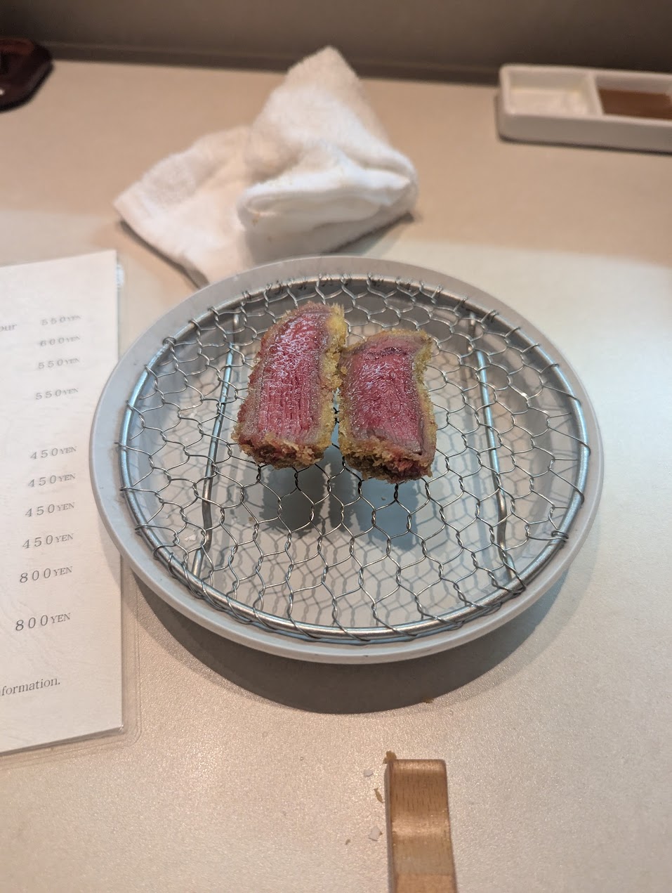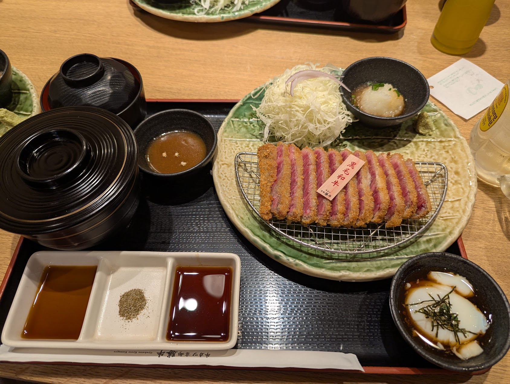 Once we hit Osaka, Abdul and I performed the “Hotel Check-In Shuffle” and then met up with Chiping for our first meal in the city of food. We hit up a Gyukatsu spot—because if you’re going to eat beef in Japan, it might as well be flash-fried and crispy on the outside while remaining buttery-pink on the inside.