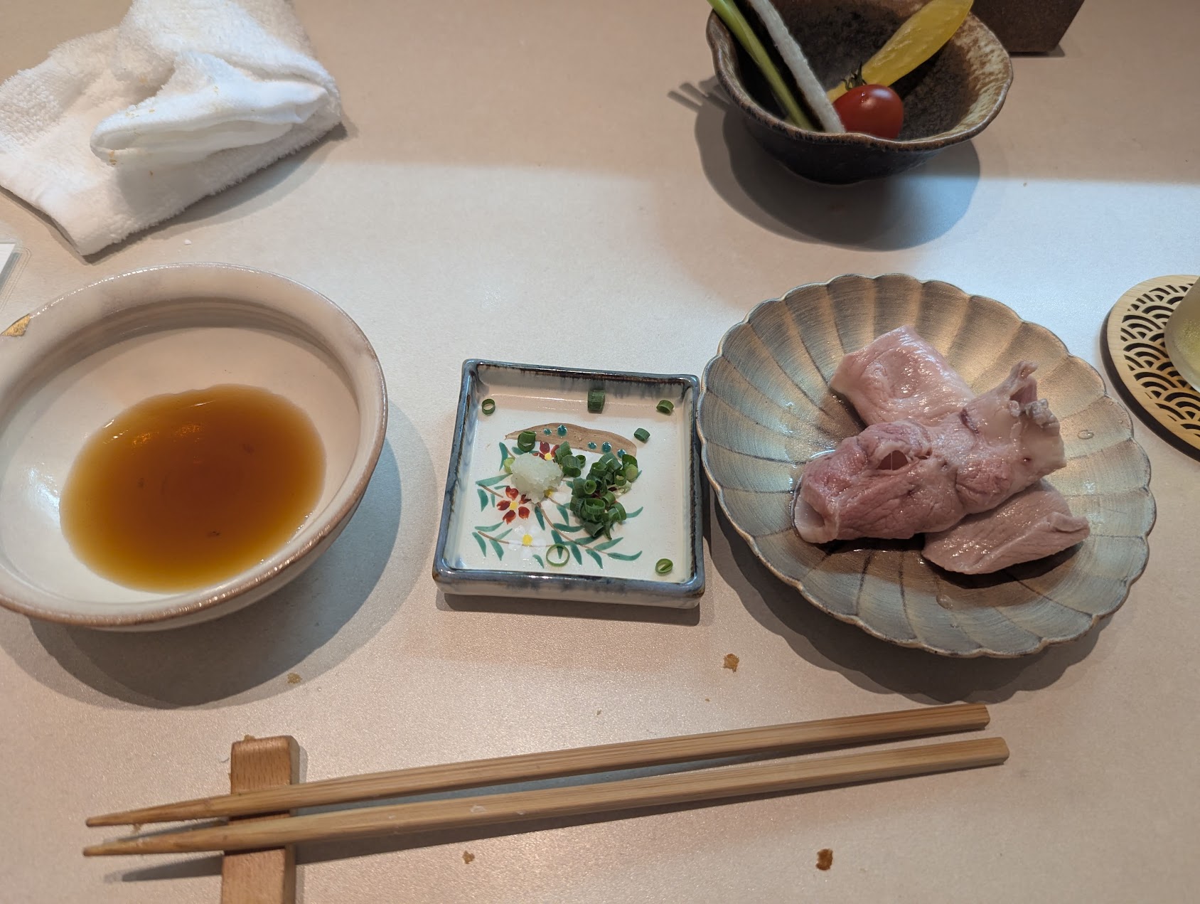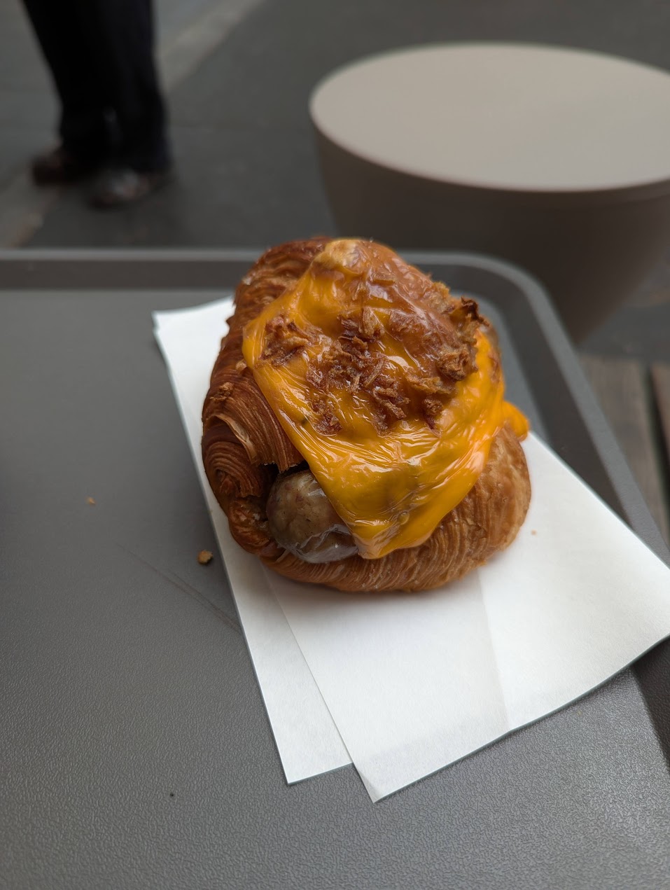 The day kicked off at Kuromon Market, where Abdul and I navigated the seafood stalls just to find a very non-traditional breakfast: a sausage croissant and coffee. Look, sometimes you’re in one of the world’s best fish markets and you just want a pastry. No regrets.