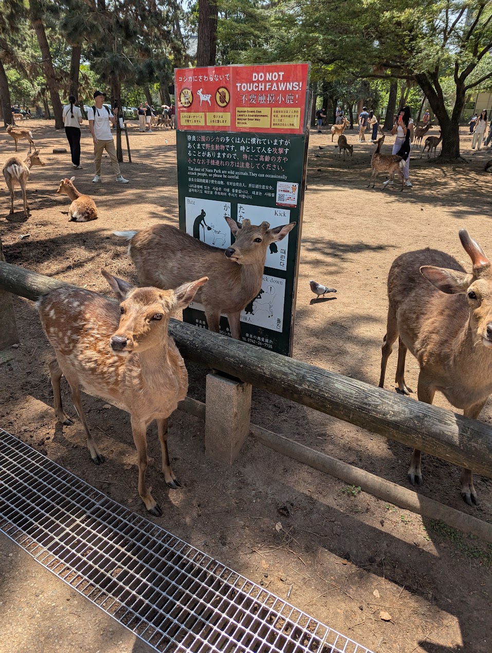 With our “market breakfast” secured, we made the pilgrimage to Nara. If you’ve never been, it’s a magical place where the deer are polite enough to bow for a cracker and aggressive enough to headbutt you if you’re too slow with the delivery. While Chiping was actually being a productive member of society (working), Abdul and I spent the afternoon dodging antlers and enjoying the peaceful—yet slightly chaotic—park vibes.