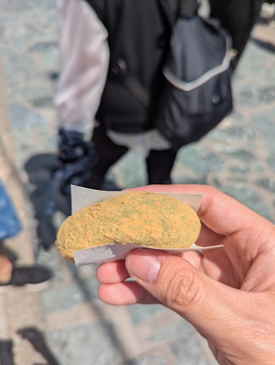 For lunch, we hit Mos Burger. I finally tried the Rice Yakiniku Burger, which is basically a burger that gave up on bread and decided to embrace its true Japanese heritage. We chased that with some freshly pounded mochi—nothing beats watching men hit dough with giant hammers to work up an appetite for dessert.