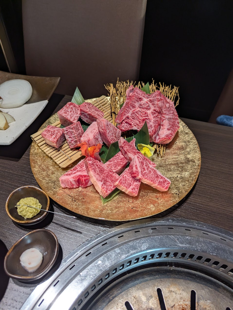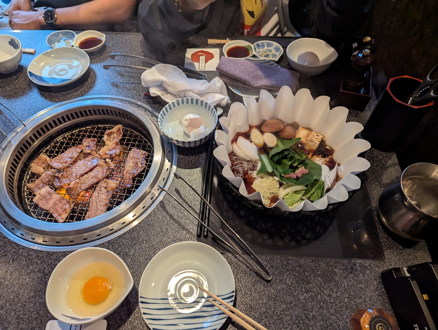 For dinner, the fellowship reunited at Ushinokura Namba for Yakiniku. There is something primal and satisfying about grilling high-grade beef at your own table after a day of dodging deer.