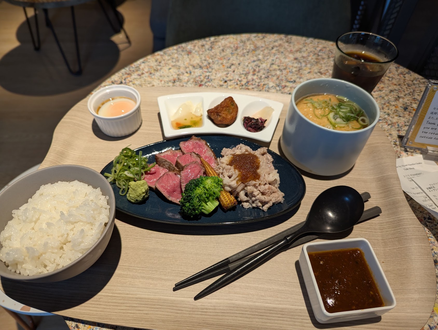 I bid farewell to Osaka the only way I know how: with a “decadent” breakfast at the Hyatt’s Talk Shop. Most people have cereal; I had a Wagyu beef breakfast set. If you haven’t started your morning by eating a cow that lived a better life than you, are you even vacationing correctly?