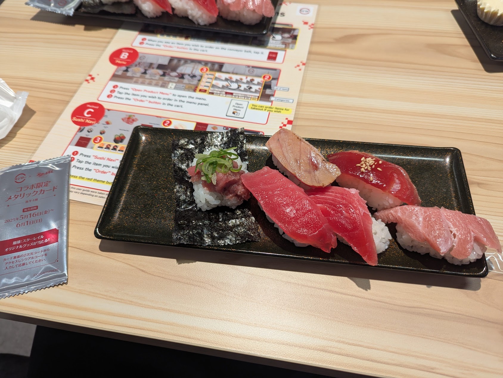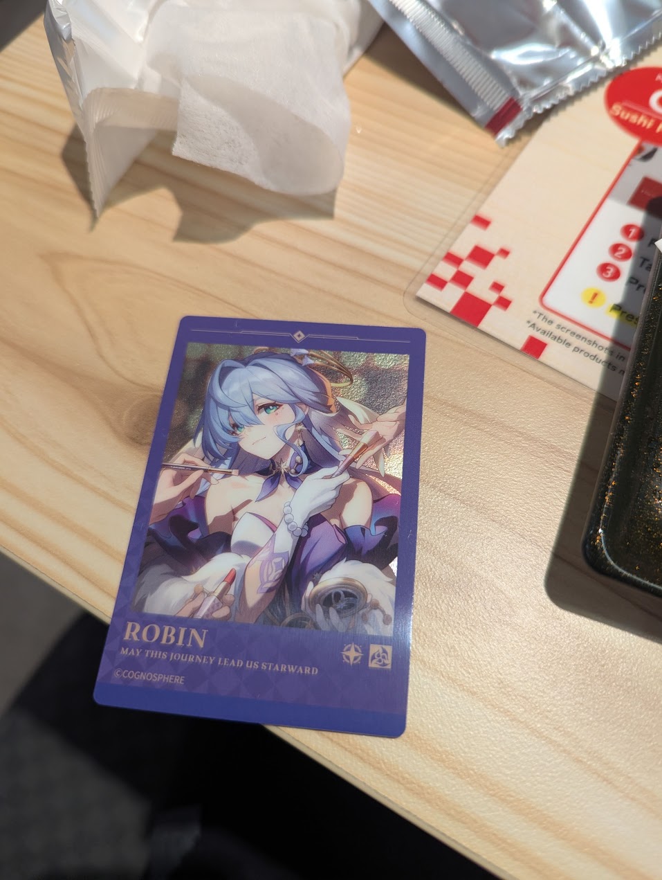 Chiping and I hit the ground running in Electric Town. We grabbed lunch at Sushiro, which was doing a collaboration with Honkai: Star Rail. Eating conveyor belt sushi while surrounded by anime space-train marketing is peak 2025.