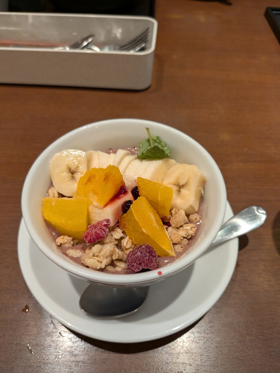 I ordered a Caesar salad with prosciutto, a bowl of Chinese noodles, a hamburger steak gratin, and an acai yogurt bowl. It was an unholy hybrid of cuisines that somehow felt exactly like what a recovering system needed. Between the laundry, the Tekken defeat, and the Denny’s feast, it wasn’t exactly the high-octane travel day we’d planned, but it was honest work.