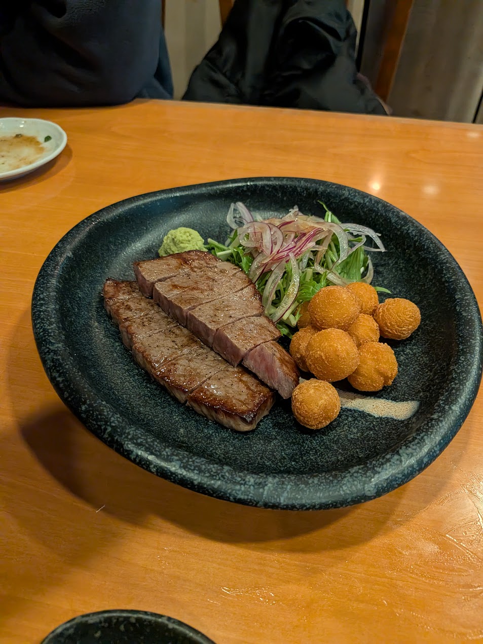 I woke up with one goal: tracking down a highly-rated local wellness spot I’d heard about. Naturally, the universe had other plans—it was the Setsubun holiday, so they were closed for the festivities. Given the state of my stomach, maybe the universe was just looking out for me. I met up with Nick, Vincent, and Takashi at Yodobashi Camera in Umeda for lunch at Ishida, a legitimate Kobe beef teppanyaki spot. The beef was incredibly tender, but my stomach—ever the drama queen—decided to hit me with another wave of nausea right as the chef started grilling. Trying to enjoy world-class wagyu while your body is staging a protest against heavy fats is a very specific kind of torture.