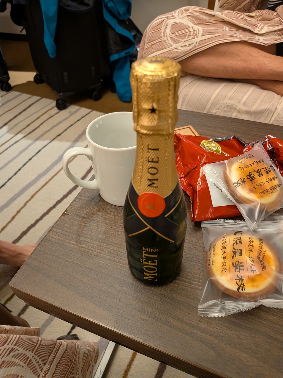 We finished the night back at the room, raiding a local drugstore for snacks to pair with the free champagne the hotel provided. Eating cheap chips while drinking bubbly in a mountain resort is the exact level of “classy trash” I’ve been aiming for this whole trip.