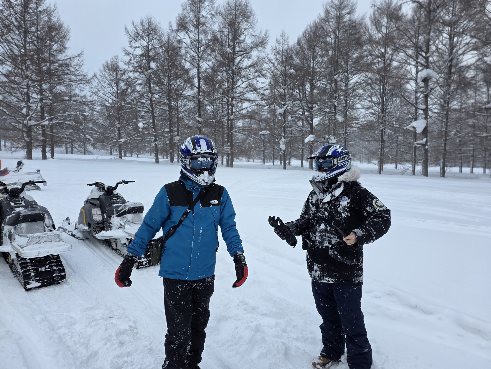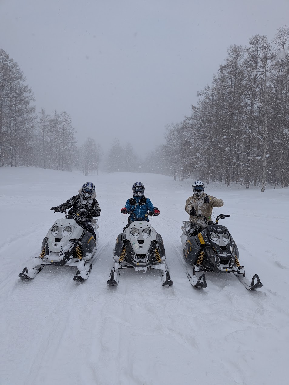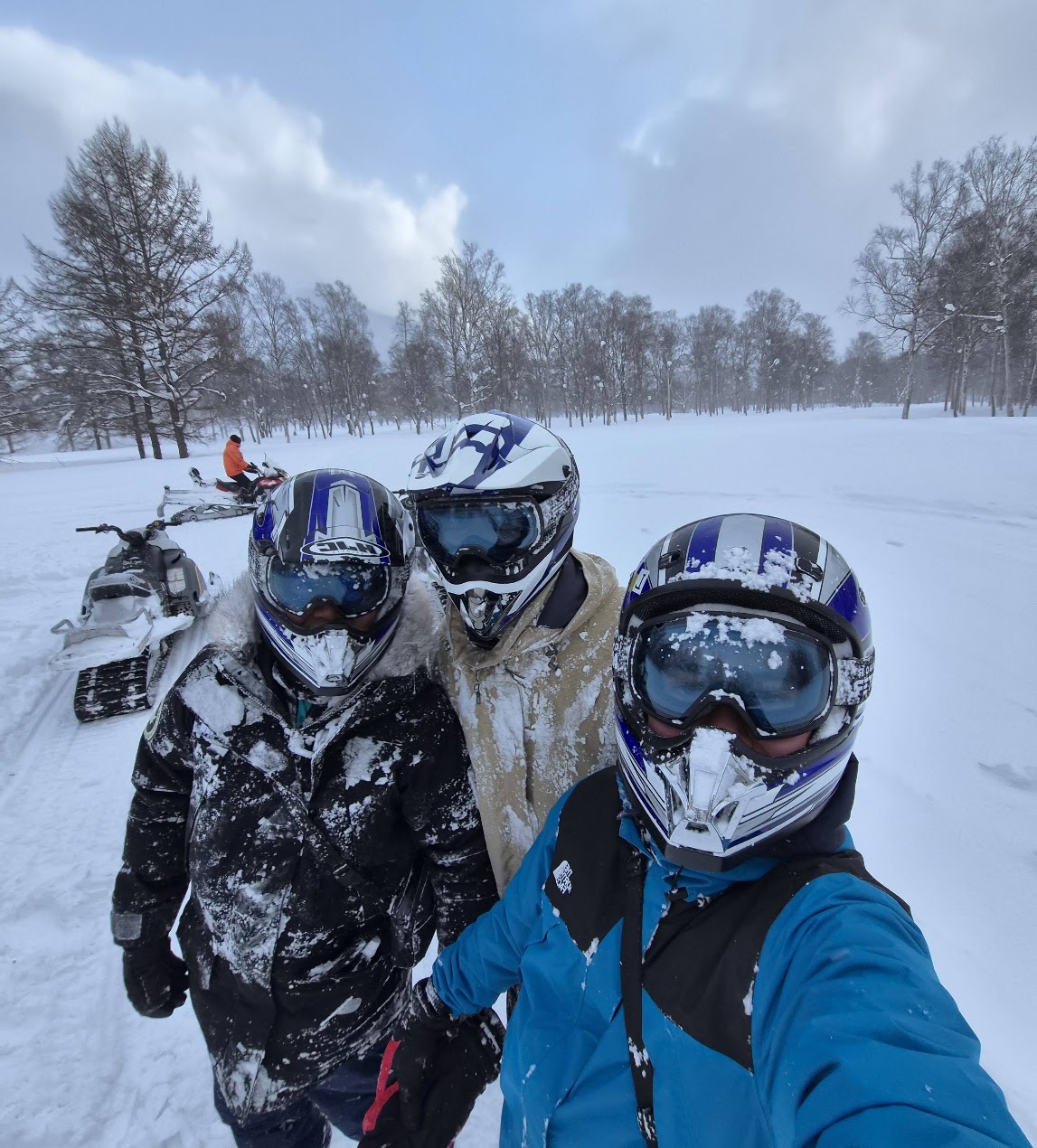 Since it was too early for check-in, we dumped our bags and headed straight to the hotel onsen area to change into our snow gear. It’s a weird feeling to be prepping for an outdoor excursion in a bathhouse, but efficiency is the name of the game. We spent the afternoon on a snowmobile rental excursion—hands down the best thing we’ve done in a while. Ripping through the fresh powder was exactly the adrenaline hit I needed to distract me from my recurring stomach issues.