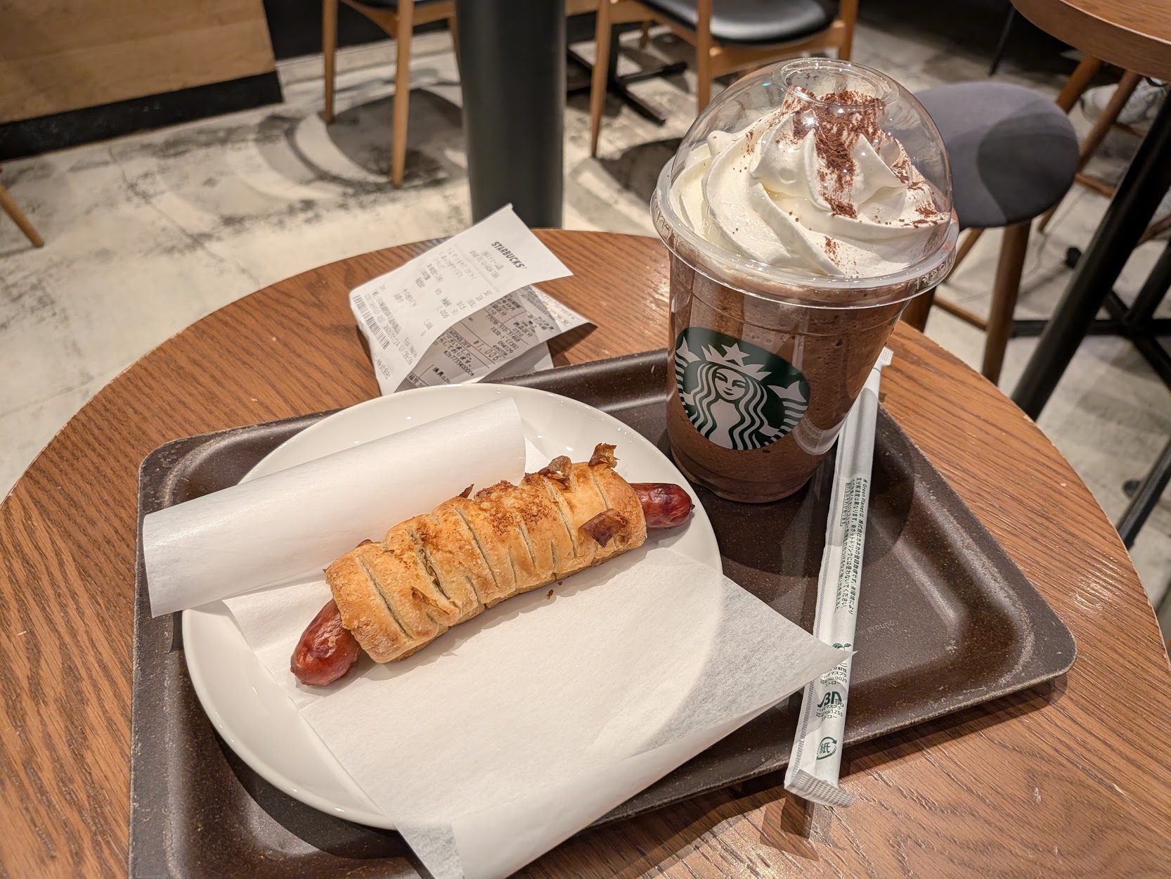 After the absolute disaster that was Day 1, I woke up, scrubbed away the lingering travel trauma, and hit the Starbucks downstairs. I ordered a “sausage pie”—which is essentially a hot dog’s attempt at being a croissant—and paired it with a mocha frappe. Not exactly the nutritional foundation for an athlete, but after the flight from hell, my stomach was just happy to be invited to the party.