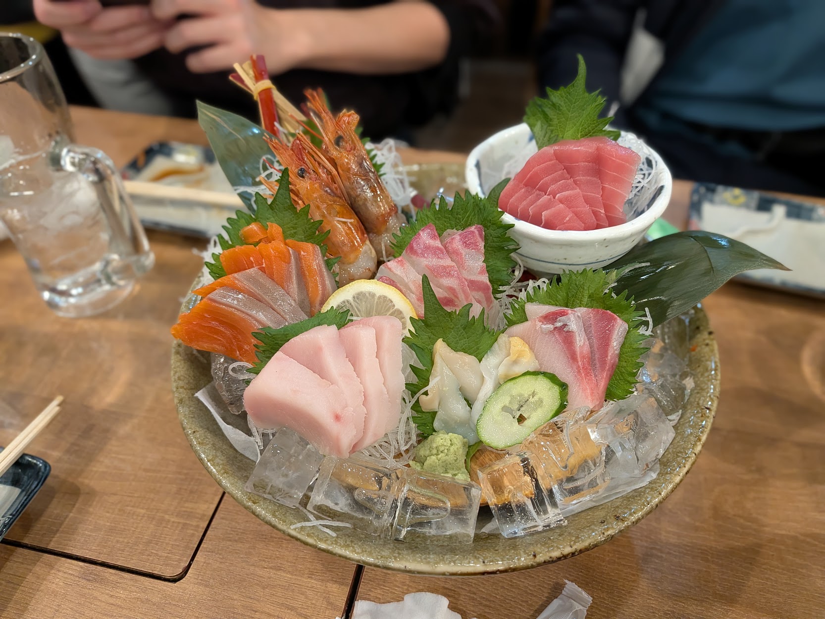 For dinner, Takashi managed to sniff out a small, traditional izakaya. It was a fantastic find—tableside grilled fish and some legitimate sashimi—which was a welcome change of pace from the “fry-it-yourself” chemistry experiments of Day 2. There’s something deeply satisfying about watching a professional handle the grill while you just focus on the food.