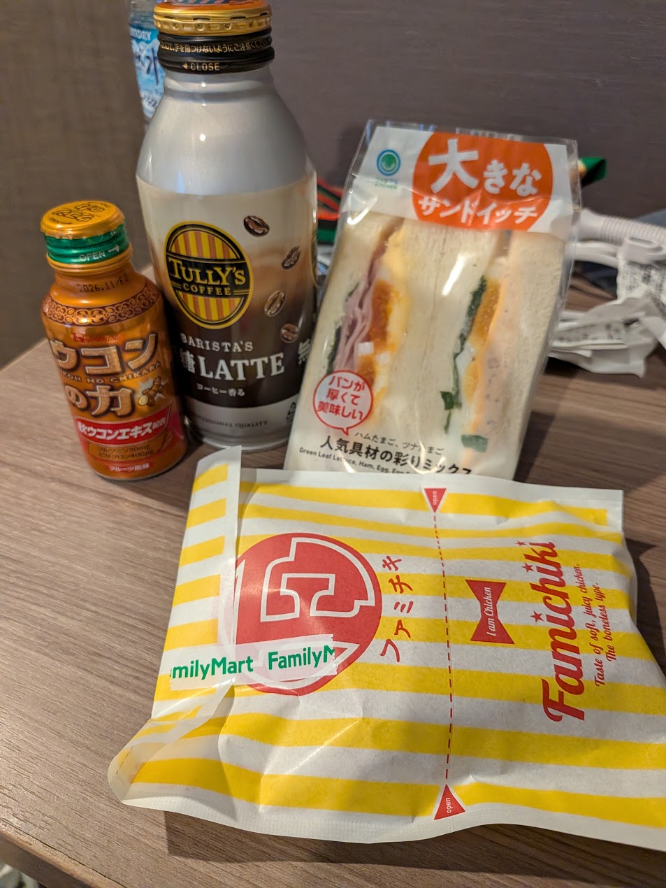 Apparently, my body has decided that the “Japan Diet” is a two-way street—things go in, and they come out with significantly more velocity than I’d prefer. I started the morning with the “high-roller” breakfast of champions from Family Mart: a Famichiki Red, a tuna and egg sandwich, and a bottle of Ukon no Chikara (the gold-standard Japanese wellness elixir).