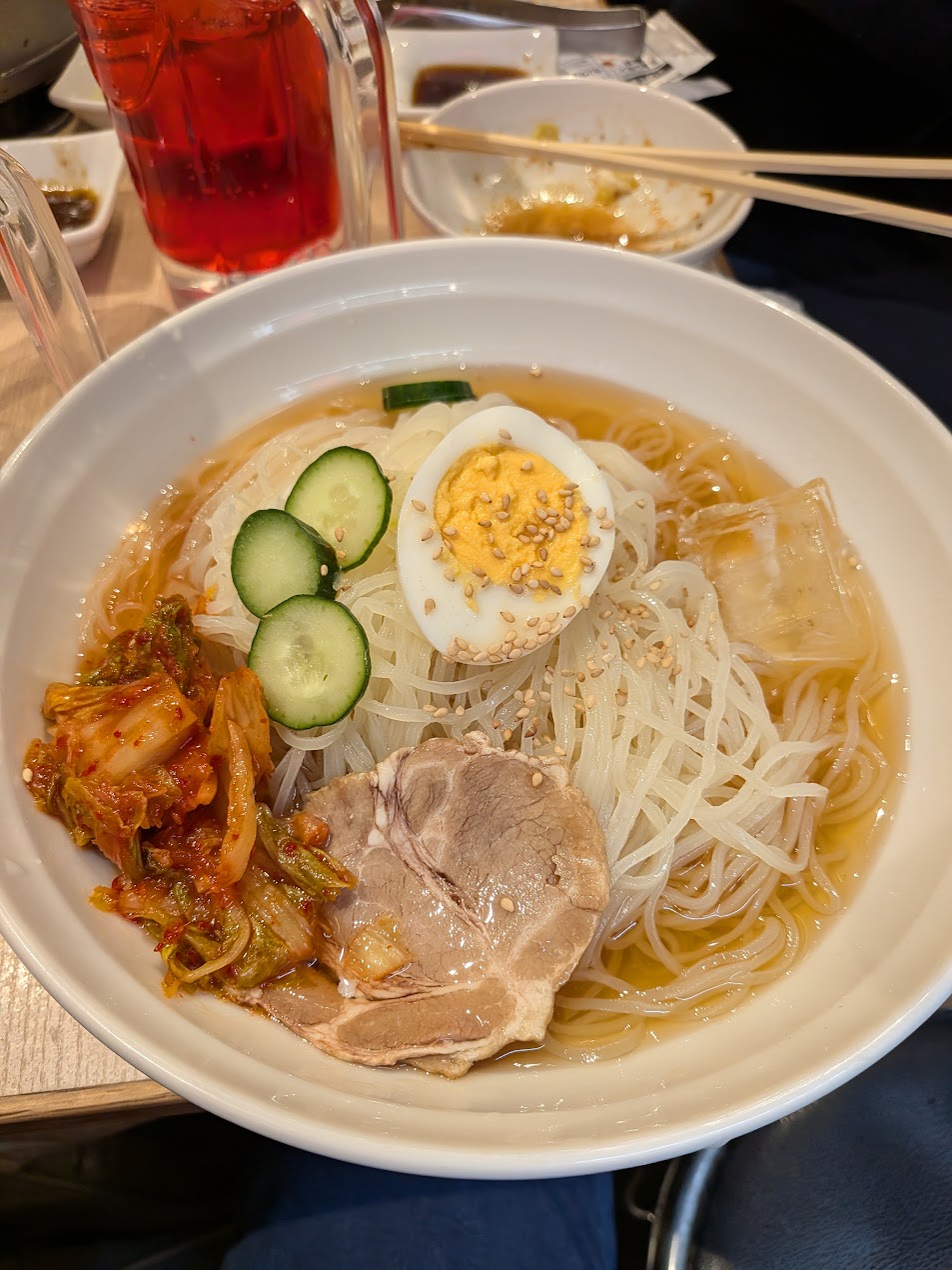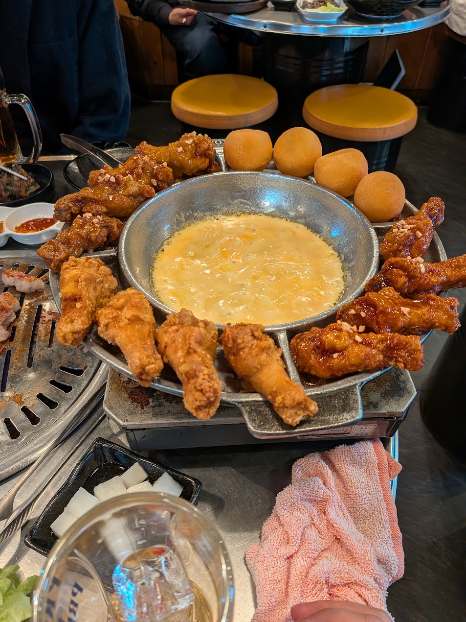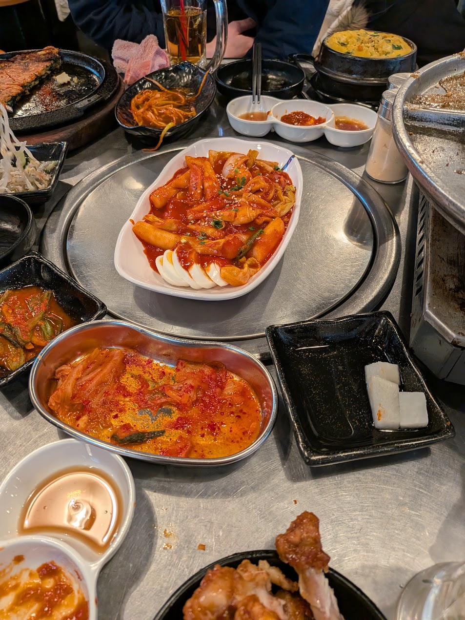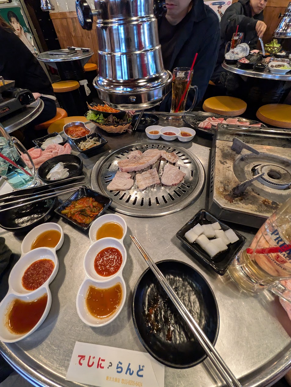 The day started with a genuine glimmer of hope: Eggs Benedict and soufflé pancakes with Takashi and Abdul. If you’re keeping track, this was the first meal in days that didn’t end with me immediately contemplating my life choices in a bathroom stall. We did the obligatory walk around the Imperial Palace to feel cultured, then headed to Shin-Okubo for a massive Korean feast. We ordered everything under the sun—KBBQ, fried chicken, you name it. The “UFO Chicken” was the highlight—mostly because it looks ridiculous and is essentially a mountain of calories served in a literal flying saucer.