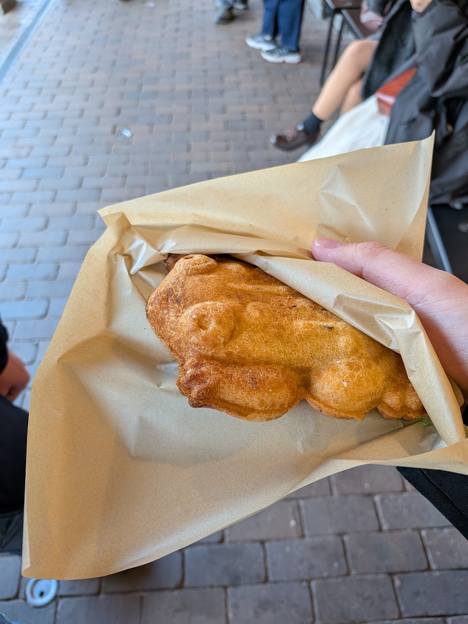 Once I was functional enough to exist in public, I met up with Takashi in Asakusa. We crushed an Asakusa Menchi (a deep-fried minced meat cutlet), a Tokyo curry pan with melted cheese, and a dorayaki. My logic was simple: if I’m going to go down, I’m at least going to go down fueled by high-quality snacks.