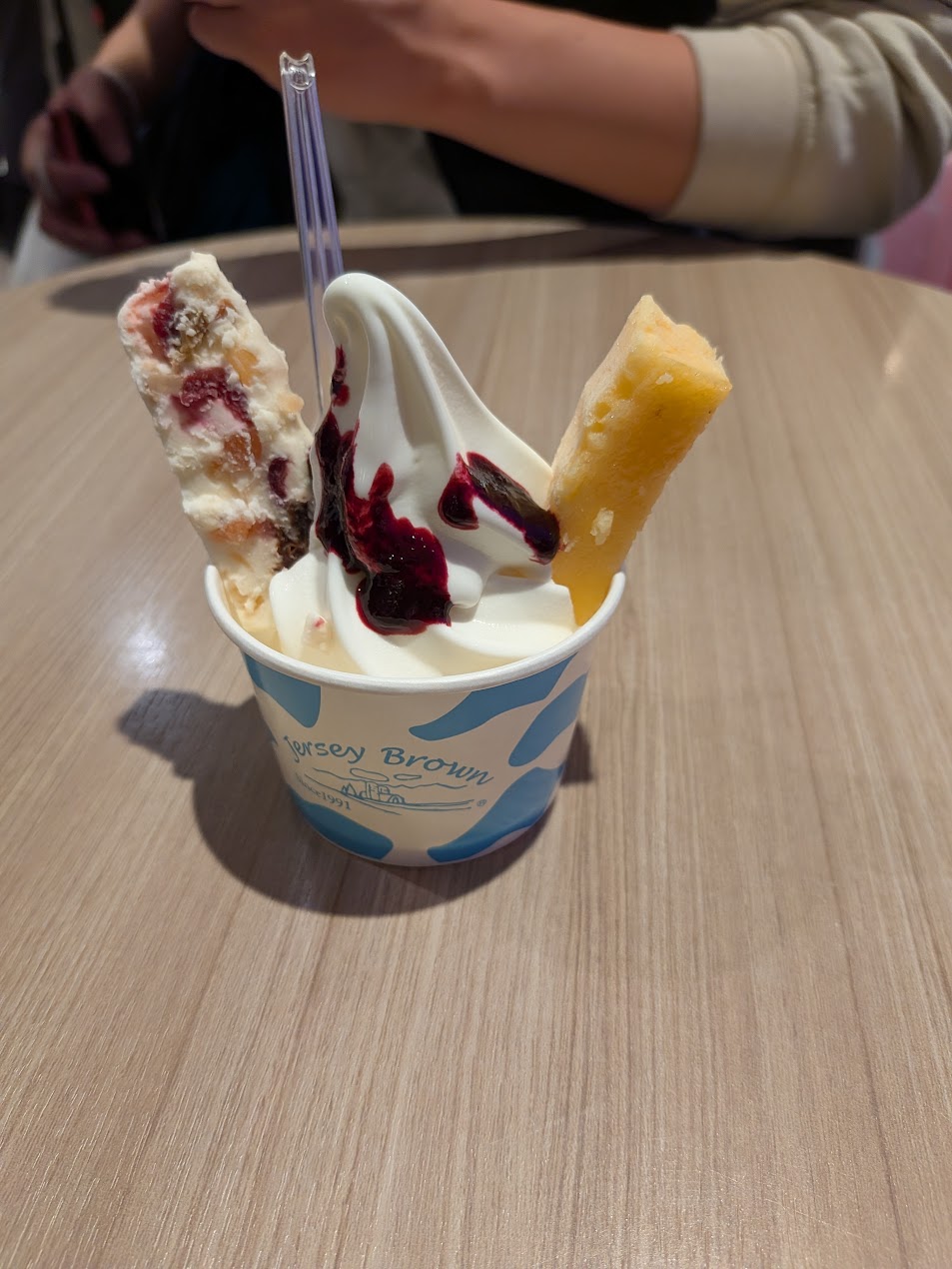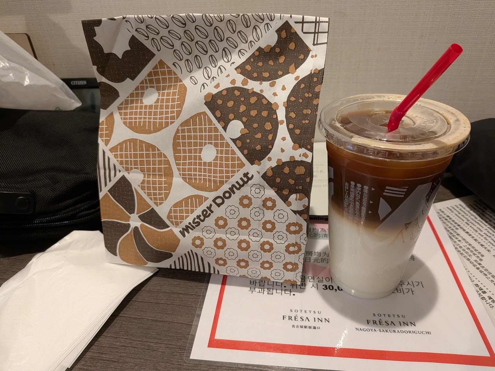 I officially broke up with Nick and Vincent for the day—they headed off to Nagashima Spa Land to subject themselves to roller coasters. Having learned my lesson about motion sickness and the “Geki-on” incident earlier in the trip, I opted for the more dignified pursuit of eating my body weight in Kyoto. I started with a “Mr. Donut” breakfast set—not exactly a balanced meal, but at this stage, my diet is basically just a randomized list of items found in a Japanese convenience store.