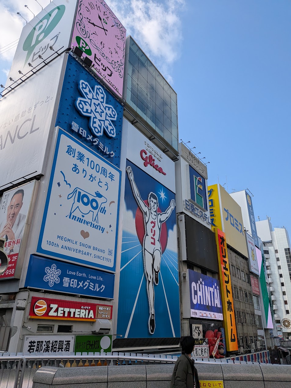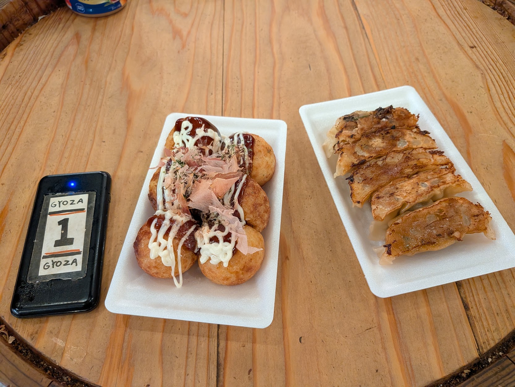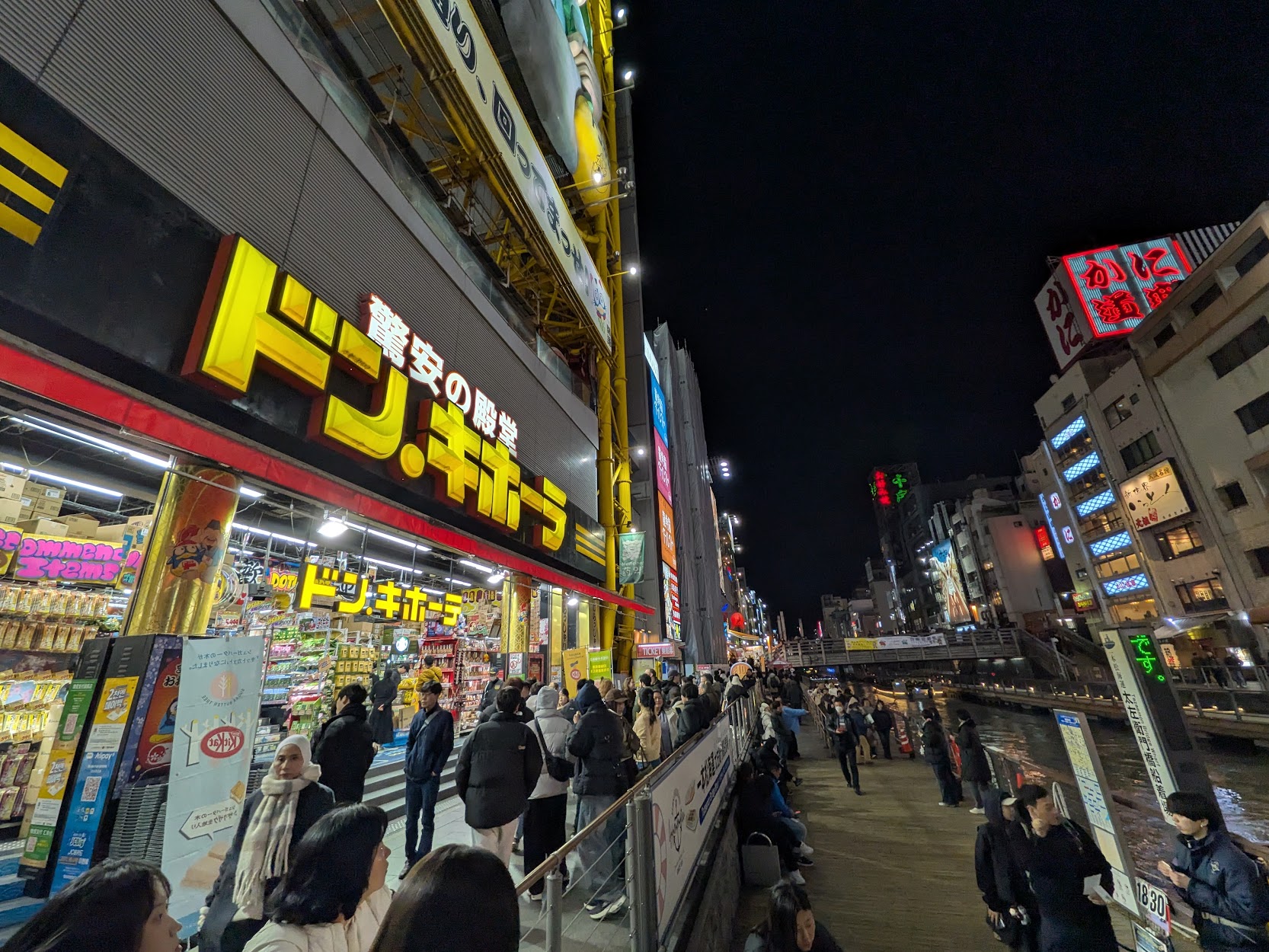 Feeling revived, I did some retail therapy at Patagonia and Adidas. I was supposed to meet the guys at Donki, but it turns out the entire group—Takashi and Abdul included—was also feeling like garbage after the heavy lunch. We scrapped the Ferris wheel and boat ride plans in favor of simple survival. We eventually linked up in Dotonbori for a street food crawl. We hit Kururu for takoyaki and tried “Dotonbori gyoza,” which is just takoyaki sauce dumped on top of dumplings. Spoiler alert: it’s not an improvement on the original.