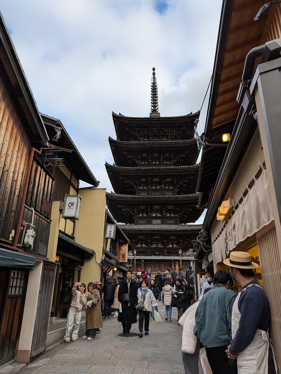 We eventually found ourselves at a “Japanese Spaghetti” place. Look, I’m all for local fusion, but spaghetti is one of those things that usually shouldn’t be a science experiment. It was “interesting”—my polite way of saying it was a confusing bowl of noodles I didn’t particularly enjoy. We walked it off on the way to Kiyomizu-dera, making mandatory pit stops for tea-flavored desserts and crème brûlée because apparently, our appetites know no bounds.