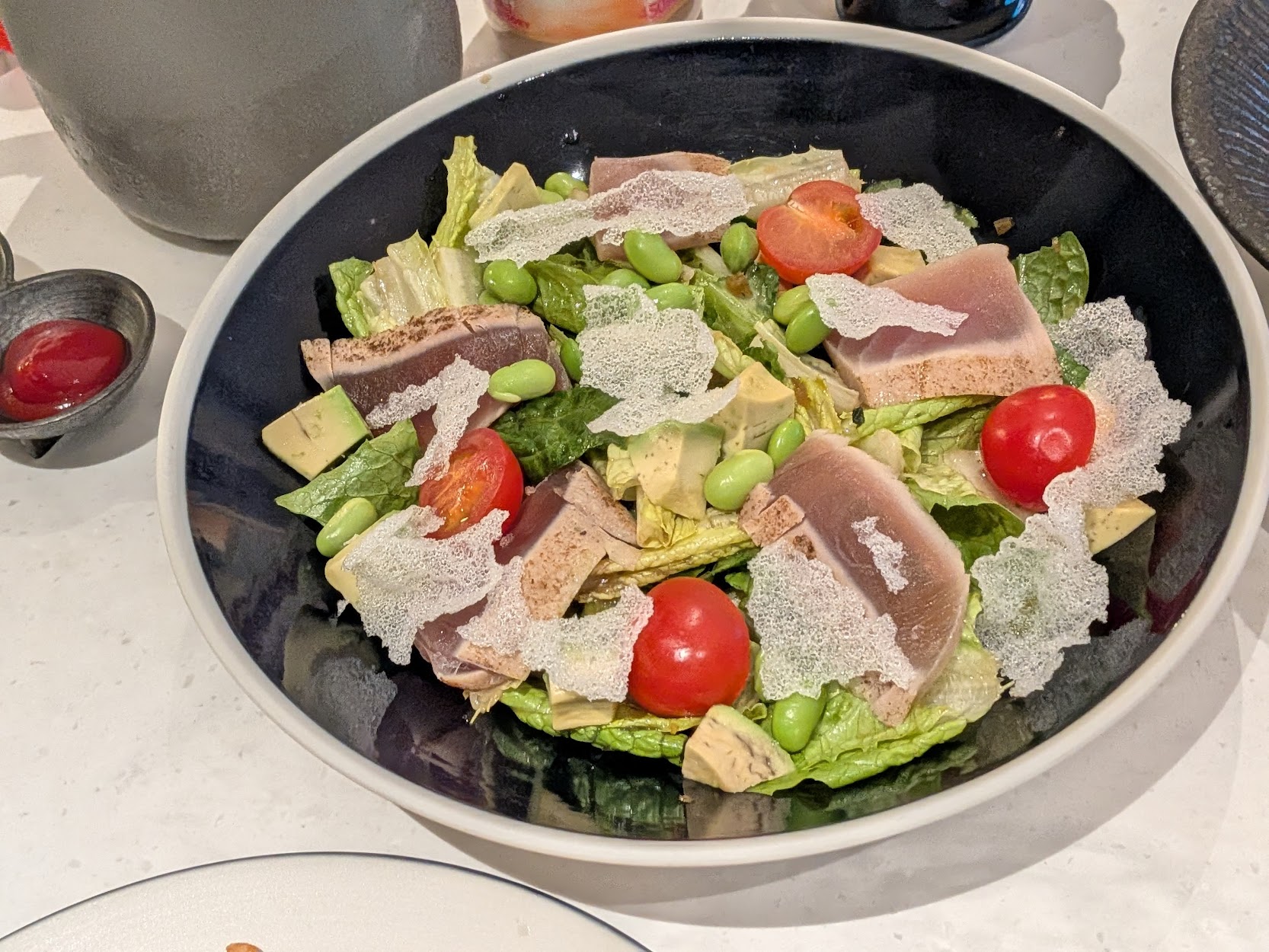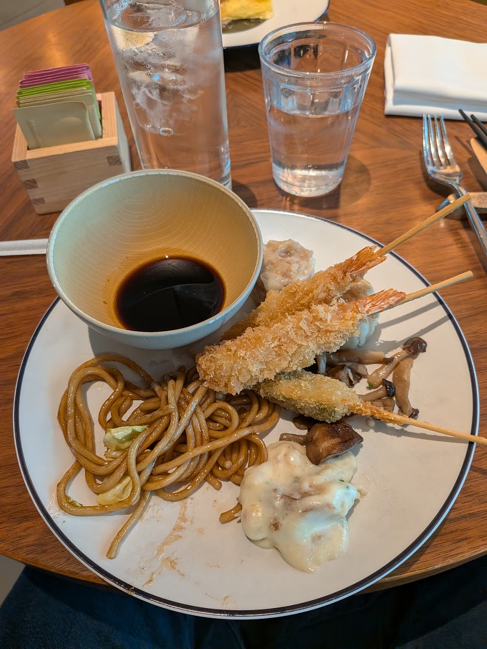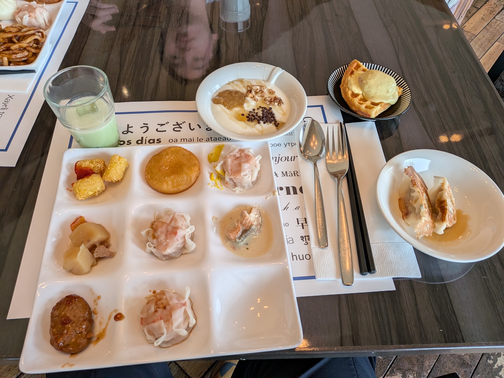 I ordered a Caesar salad with prosciutto, a bowl of Chinese noodles, a hamburger steak gratin, and an acai yogurt bowl. It was an unholy hybrid of cuisines that somehow felt exactly like what a recovering system needed. Between the laundry, the Tekken defeat, and the Denny’s feast, it wasn’t exactly the high-octane travel day we’d planned, but it was honest work.