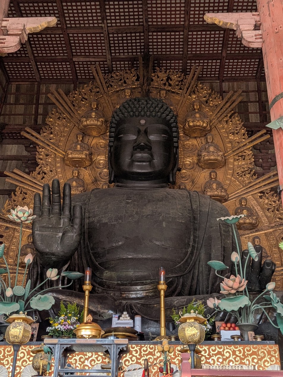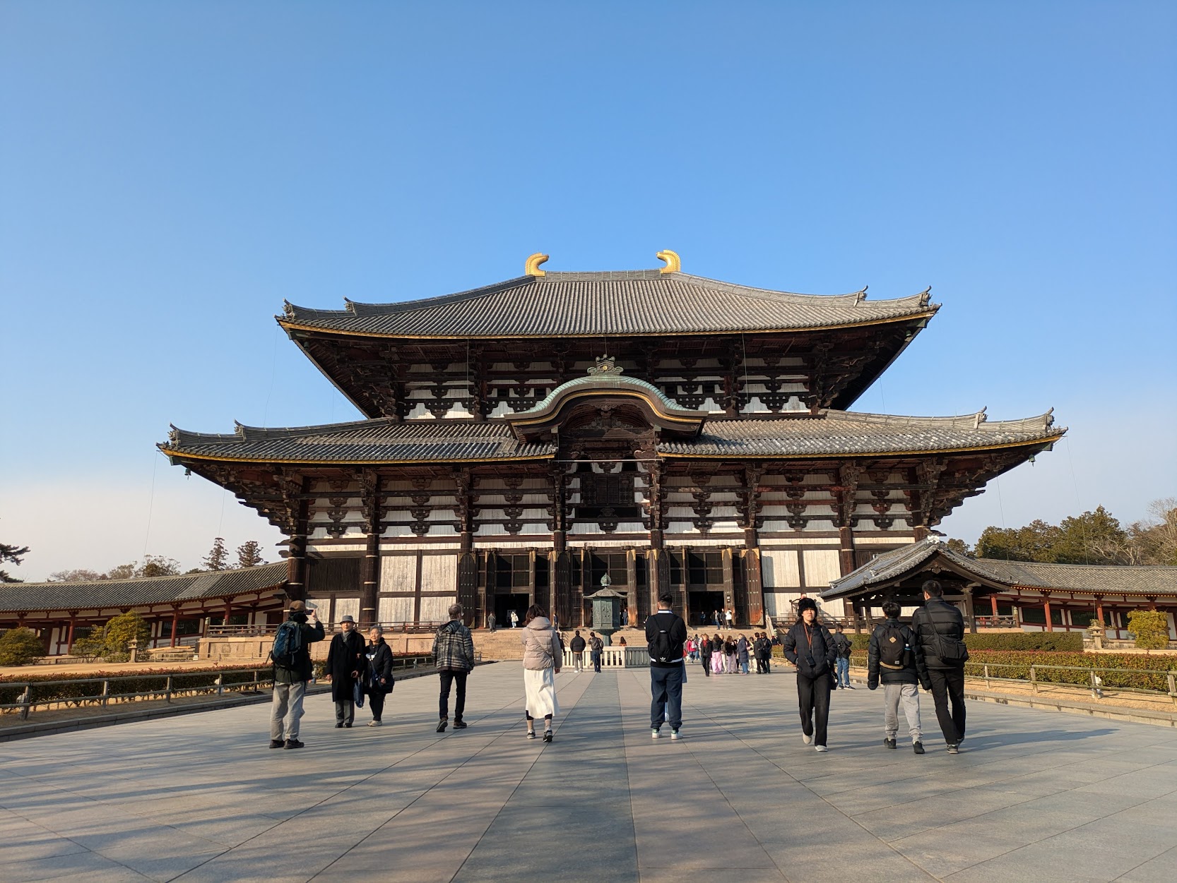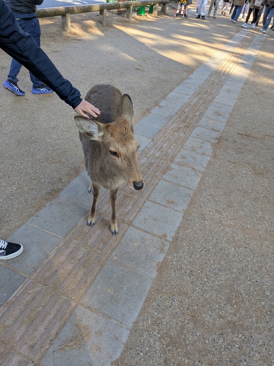 We hopped a train to Nara to deal with the local deer population, who are essentially the mob bosses of the city. We spent the afternoon bowing to them—yes, you have to bow, or they lose their minds—and feeding them crackers while they looked at us with absolute indifference. We checked out the massive Todai-ji Temple, where the highlight was watching Nick attempt to shimmy his way through the “lucky Buddha hole” in a wooden pillar. Watching a grown man struggle to fit through a piece of wood for good luck is, frankly, the most spiritual experience I’ve had all trip.