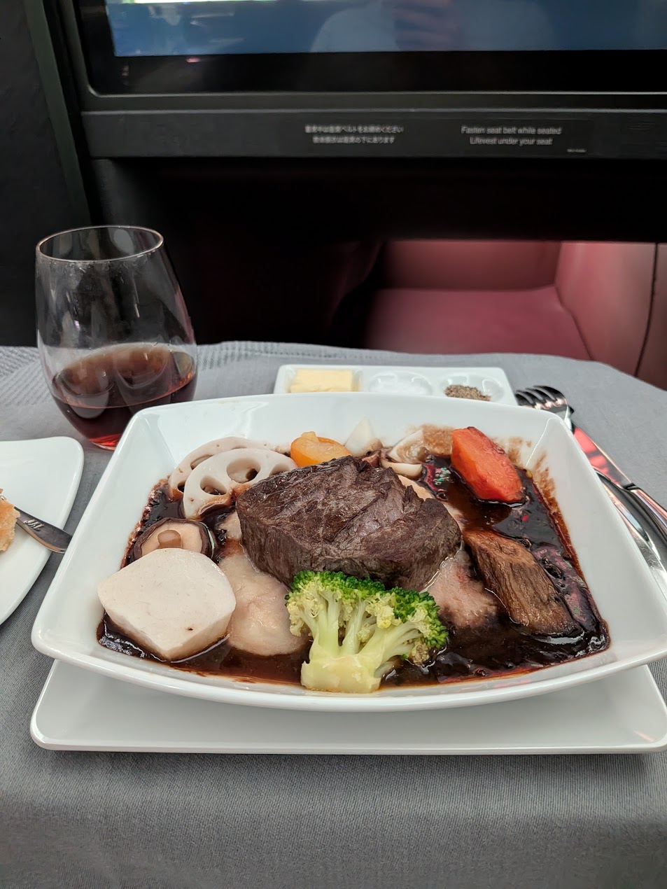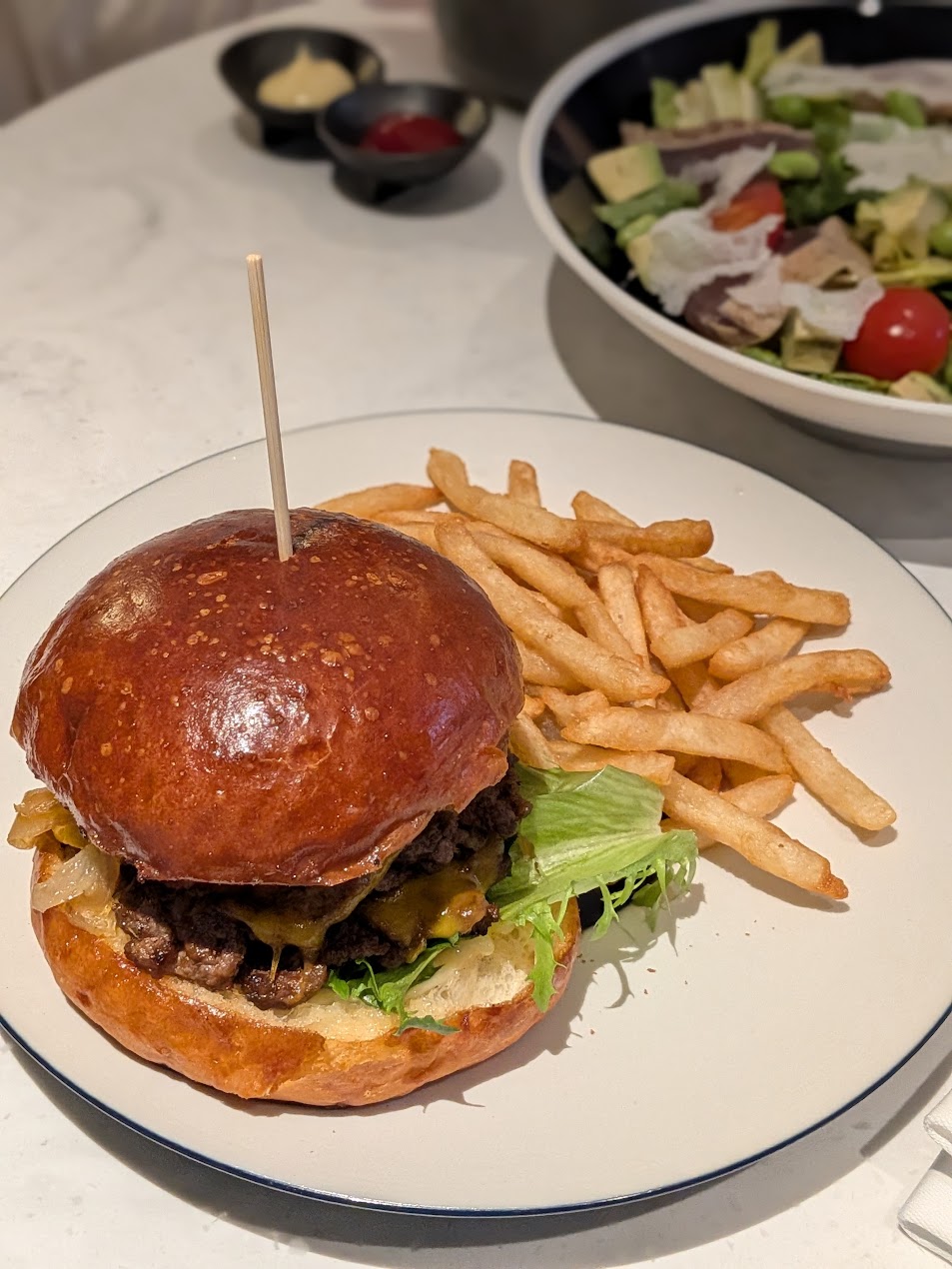 Since it was my last night in Osaka, I had a mission: burn my Amex dining credit. I hauled myself back to the hotel and forced down a “victory lap” meal of a burger, fish, and a mountain of desserts. Room service took about a century to arrive, giving me plenty of time to wonder why I keep feeding my body things it clearly hates.