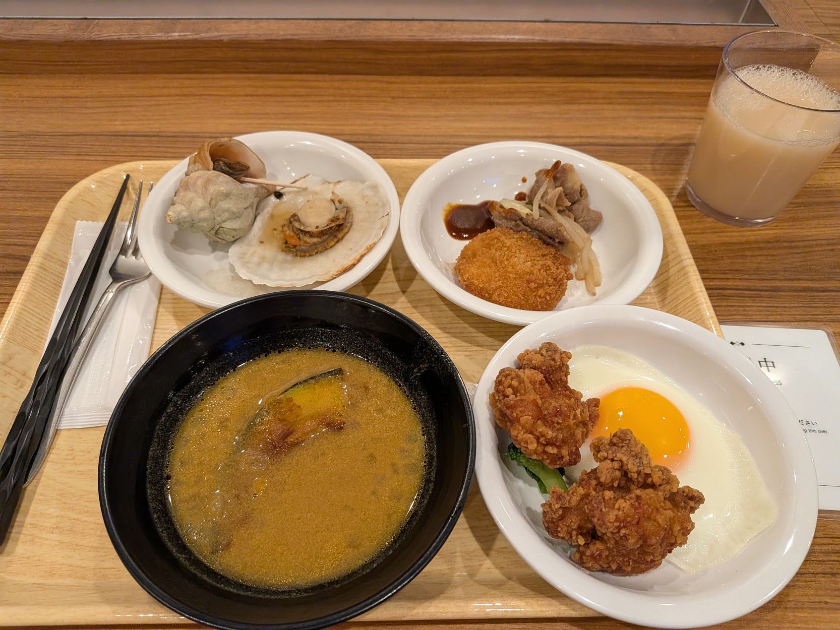 Then came the serious business: The Great Conbini Showdown. We bought a spread of fried chicken and sandwiches from both Family Mart and the Hokkaido-exclusive Seico Mart, washed down with a Soft Katsugen (a local dairy drink that tastes like a delicious fever dream). In the battle of the birds, Family Mart absolutely smoked Seico Mart on the fried chicken. My only regret? I didn’t buy a “Hot Chef” t-shirt from Seico Mart. It’s a massive fashion tragedy that will haunt me.