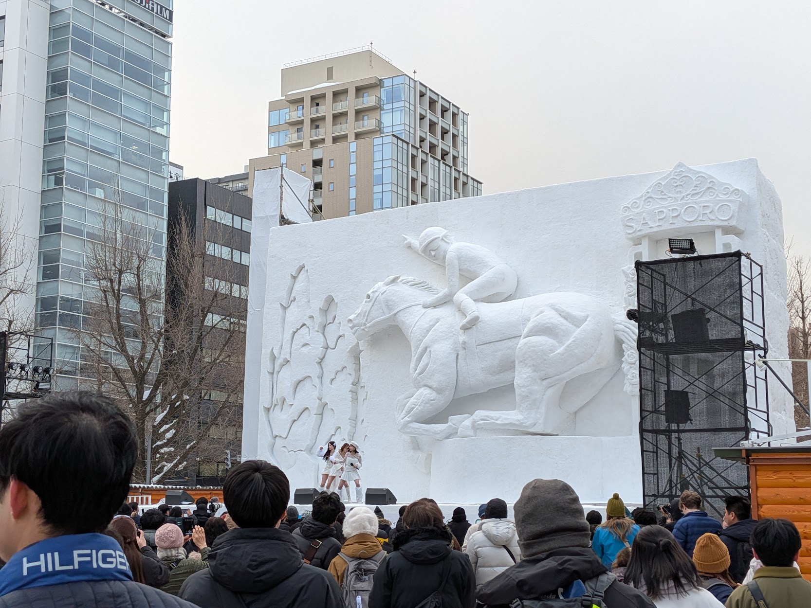 Odori Park was genuinely impressive. Seeing entire anime sagas and historical landmarks rendered in giant blocks of snow is a level of dedication I can’t even fathom. They even had a high-energy K-pop performance going on right in the middle of the ice, which was a surreal vibe. I spent the walk snacking on chocolate-covered strawberries, proving once and for all that I am a refined man of culture.