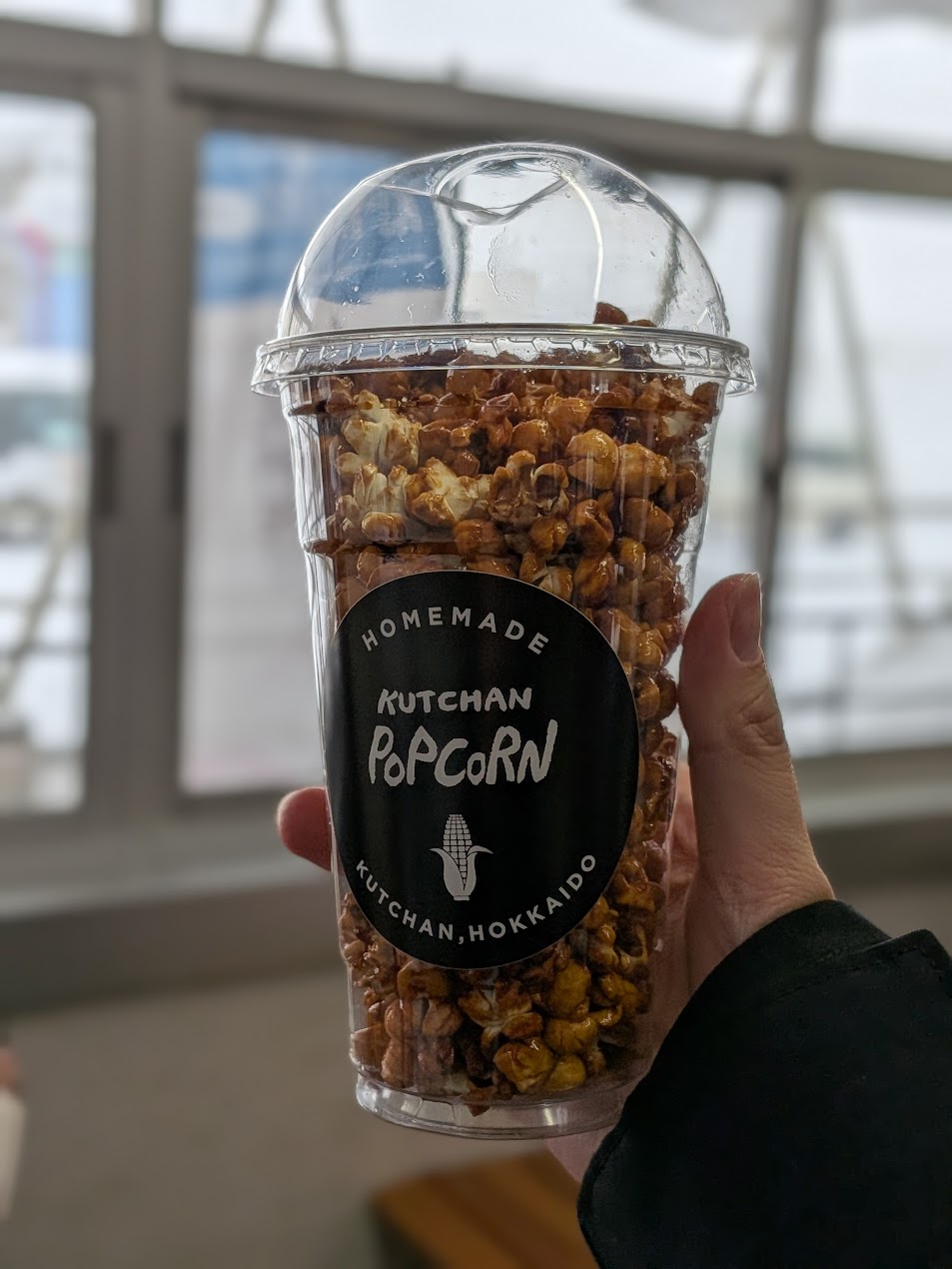 From Kutchan, we caught the bus to the Hilton Niseko Village. The station there is tiny, and while we waited for our ride, I bought some popcorn that I can only describe as “aggressively mediocre.”