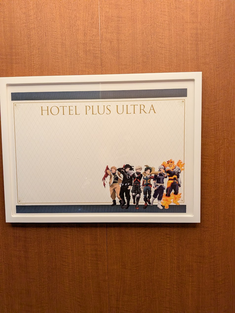 By the time we finally landed in Tokyo and cleared the airport, it was past 11:00 PM. I was sweating the train schedule, having flashbacks to the Osaka Uber incident, but we managed to catch the very last runs before the system shut down. I finally checked into my hotel, which unexpectedly featured a full My Hero Academia themed lobby—exactly the kind of “Plus Ultra” energy a thirty-something man needs to see at midnight.