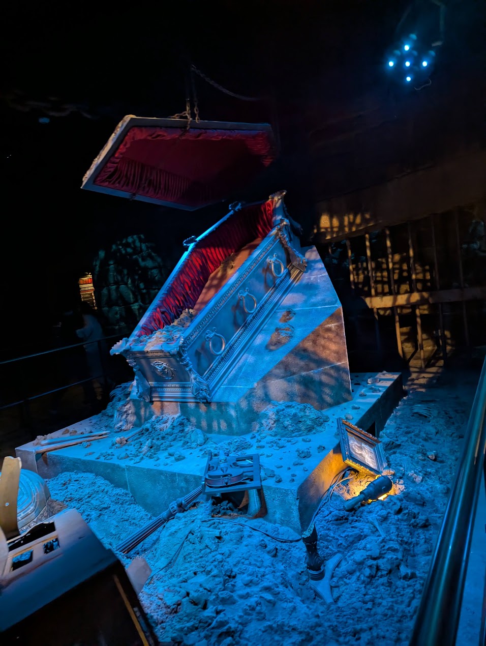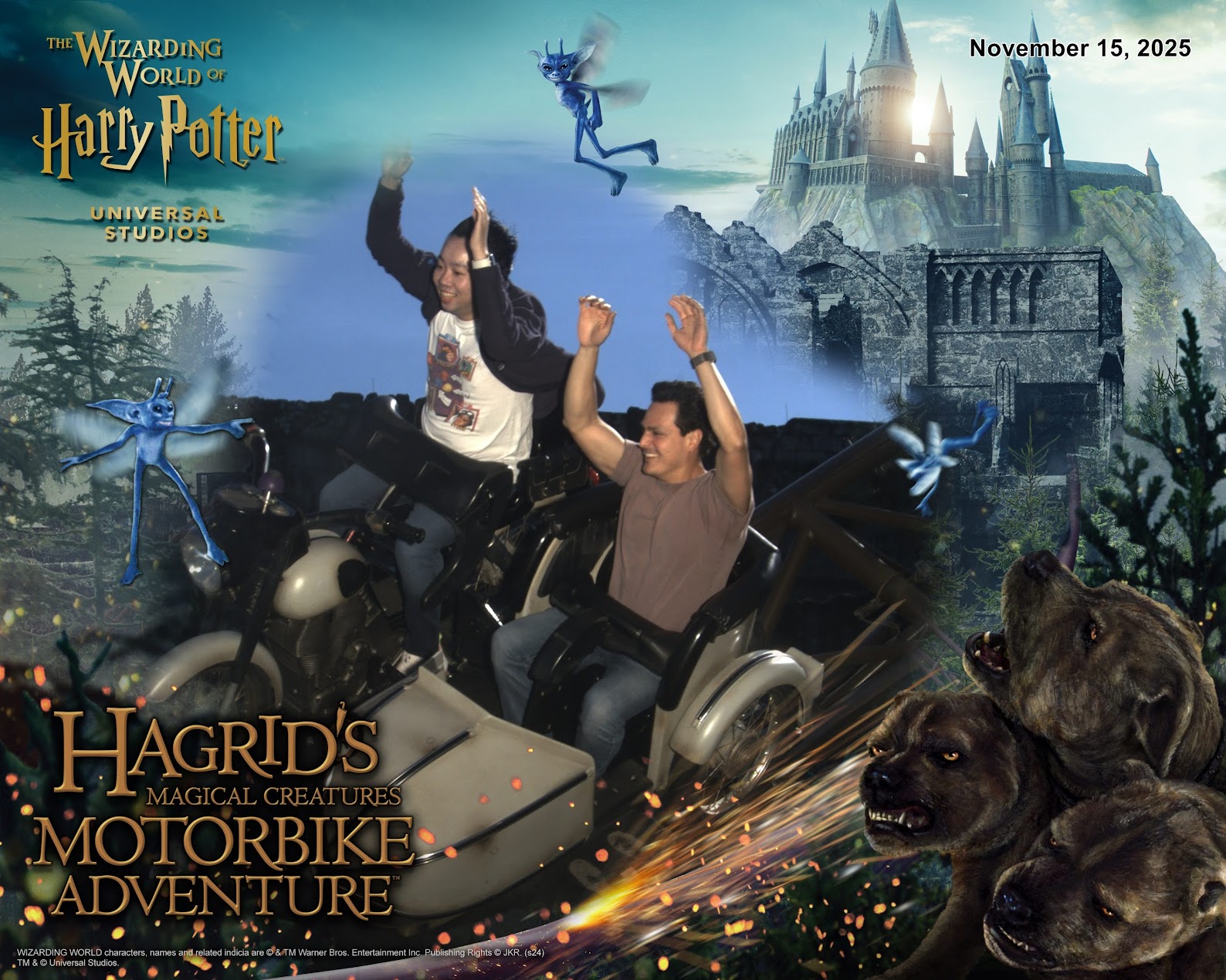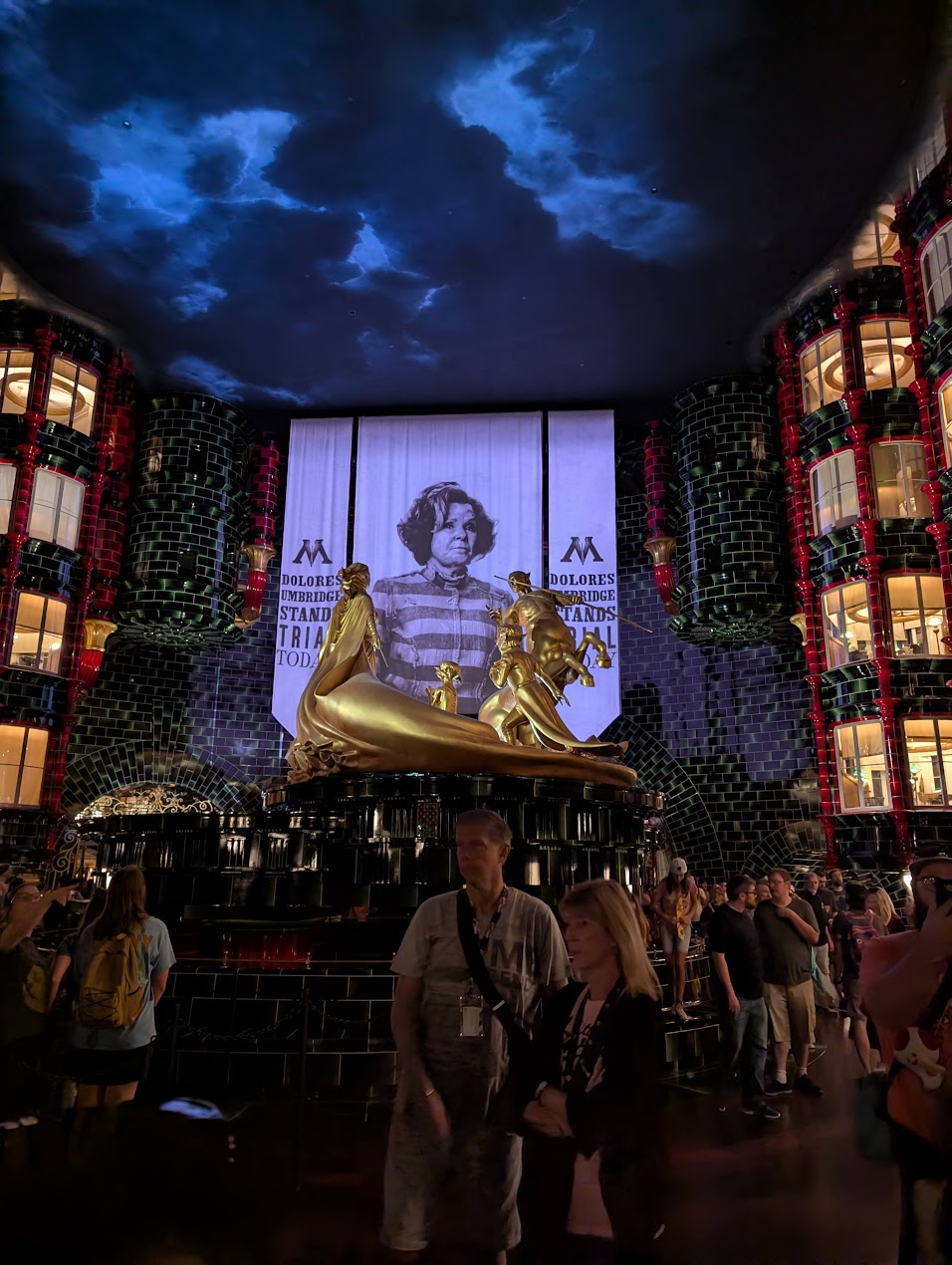 We headed to Diagon Alley for Escape from Gringotts. Evan’s coffee couldn’t fit in the locker, so I hit the single-rider line, which was a mythical walk-on. Evan initially claimed the ride was bad, but after we rode it together (and he finished his coffee), he admitted he actually enjoyed it. Redemption!