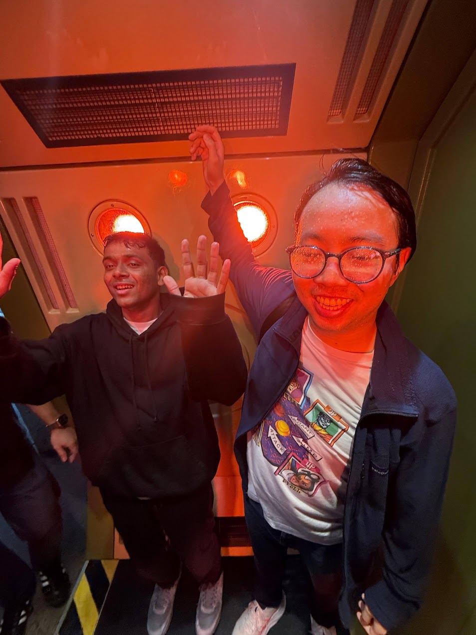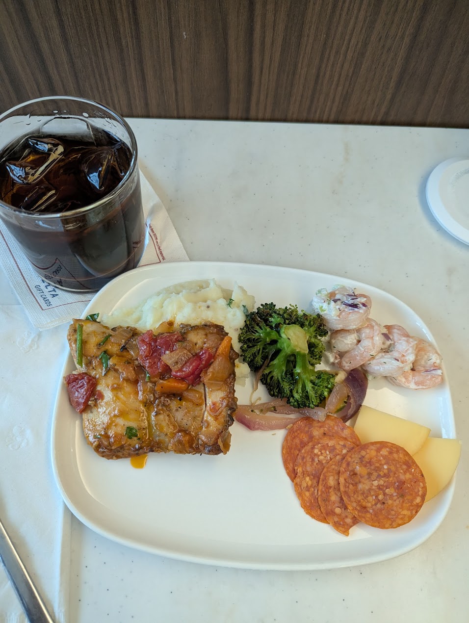 The journey began not with a noble quest, but with a strategic raid on the Delta Lounge on Friday. We didn’t fly first-class, but I certainly ate like it. Chicken, desserts… standard pre-flight fuel. I even managed to smuggle some contraband desserts in a cup to my coworkers, Nikhil and Evan, before boarding the Delta flight to Orlando. That, friends, is commitment.