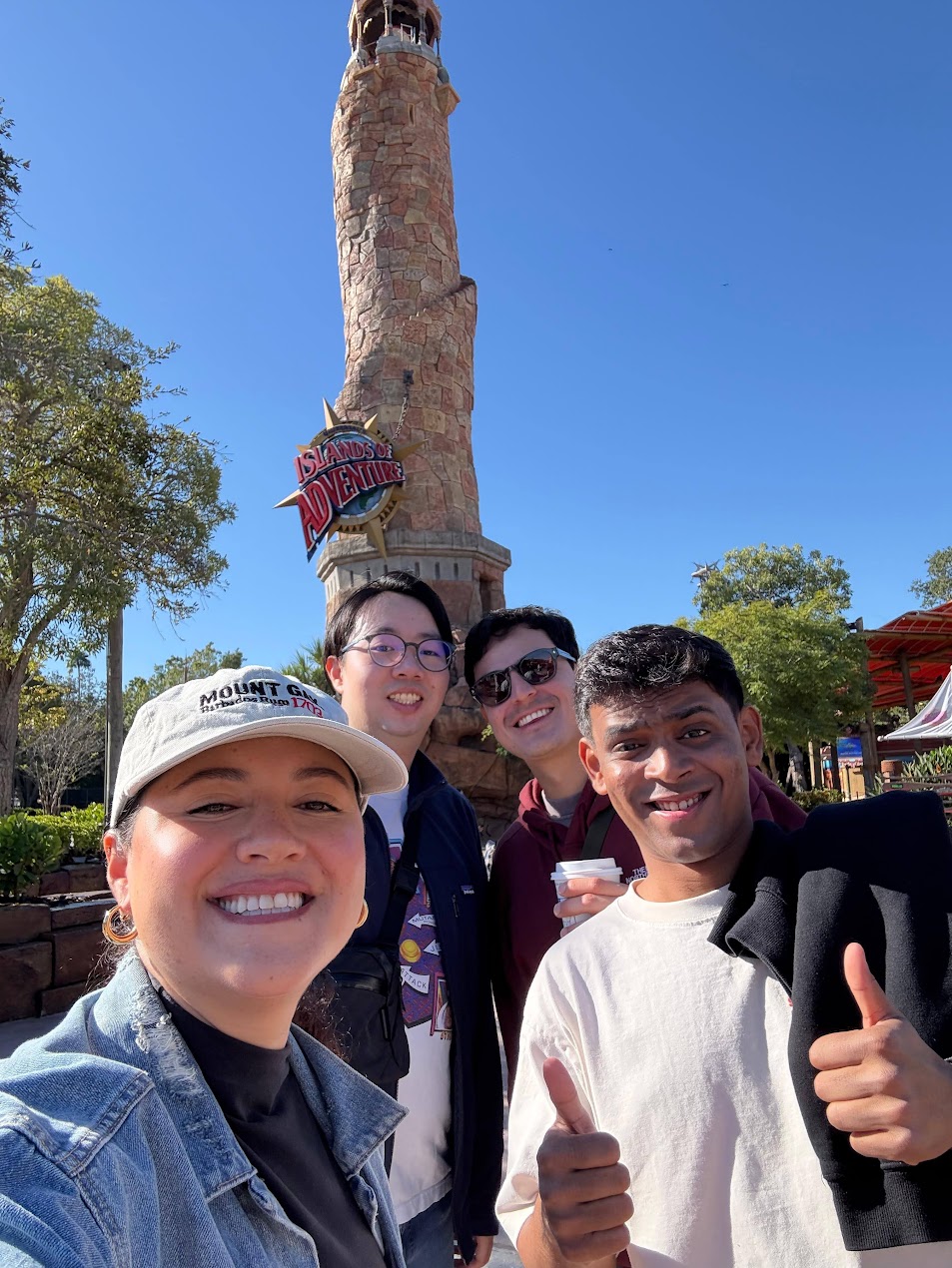 The remaining squad (Nikhil, Evan, and I) leveraged our Unlimited Express Passes to marathon Velocicoaster and Hagrid’s. This is where things went sideways. We ate a banana split in Seuss Landing, and I procured a frozen rum and coke from Jurassic Park that was apparently 90% rum. I immediately felt awful, had to throw myself onto a bench, and stabilized the situation with a pizzadog from Marvel Super Hero Island. Rehydrated and cheesed-up, we re-rode Spider-Man and Hulk one last time.